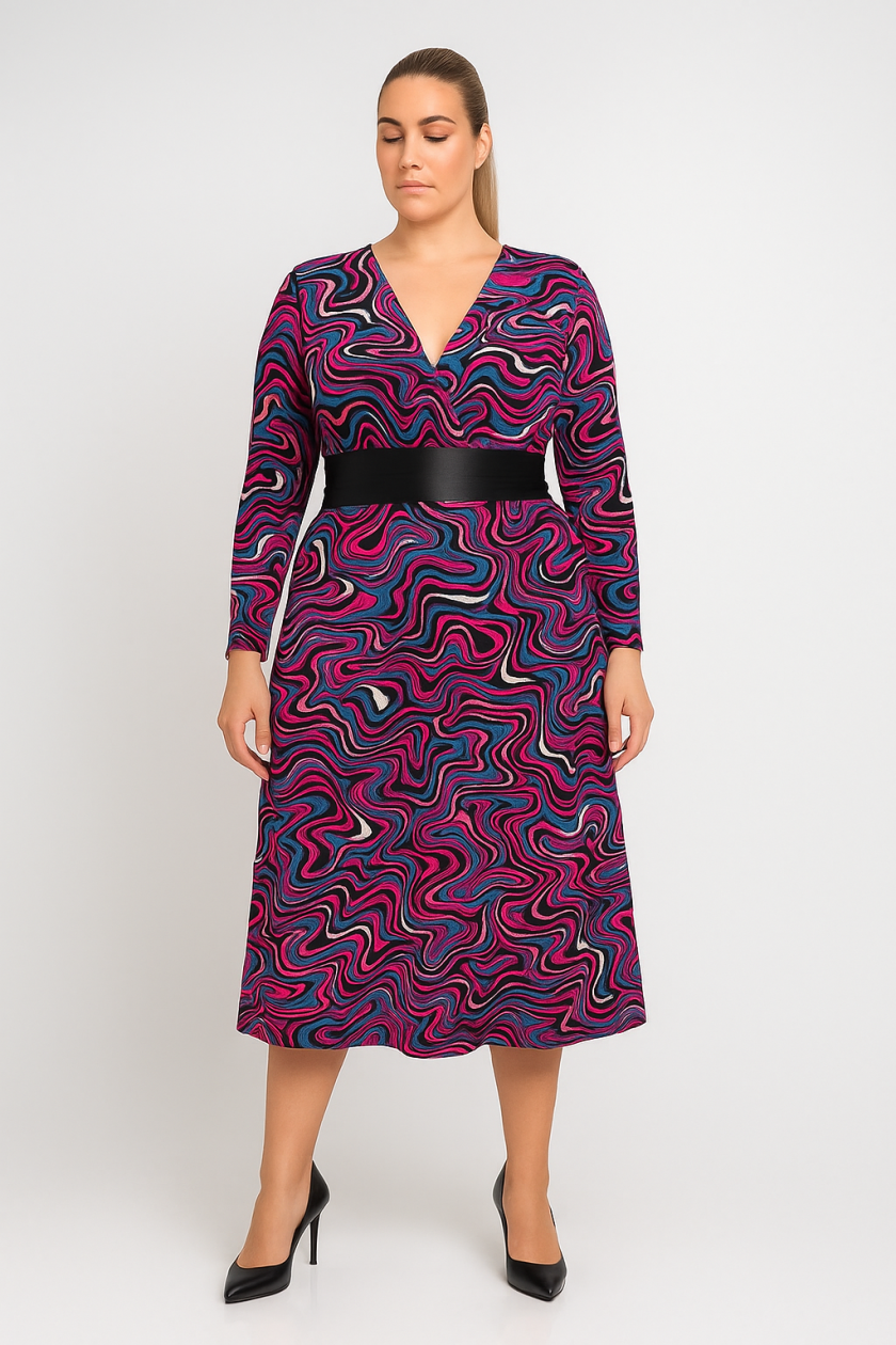 ΚΩΔΙΚΟΣ: alex3113fΓυναικείο Φόρεμα Χνουδωτό Φούξια Ματ Βαμβακερό Midi Κρουαζέ Με Τσέπες Plus size