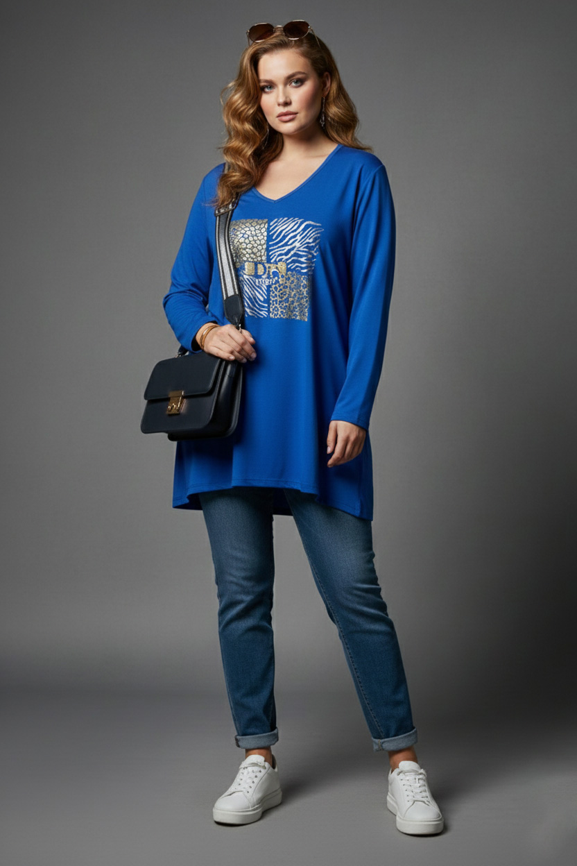 ΚΩΔΙΚΟΣ: alex008Γυναικεία Μπλούζα V-neck άνετη, loose γραμμή (tunic style) Curve-Plus Size