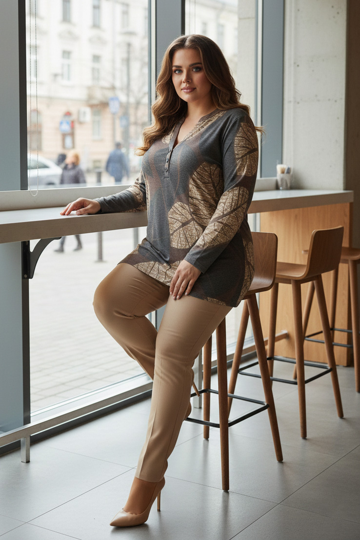 ΚΩΔΙΚΟΣ: alex0124bzfΓυναικεία Μπλούζα Με Μοτίβο φύλλα σε Ψιλό Πλεκτό Με 3 Κουμπιά Curve-Plus Size