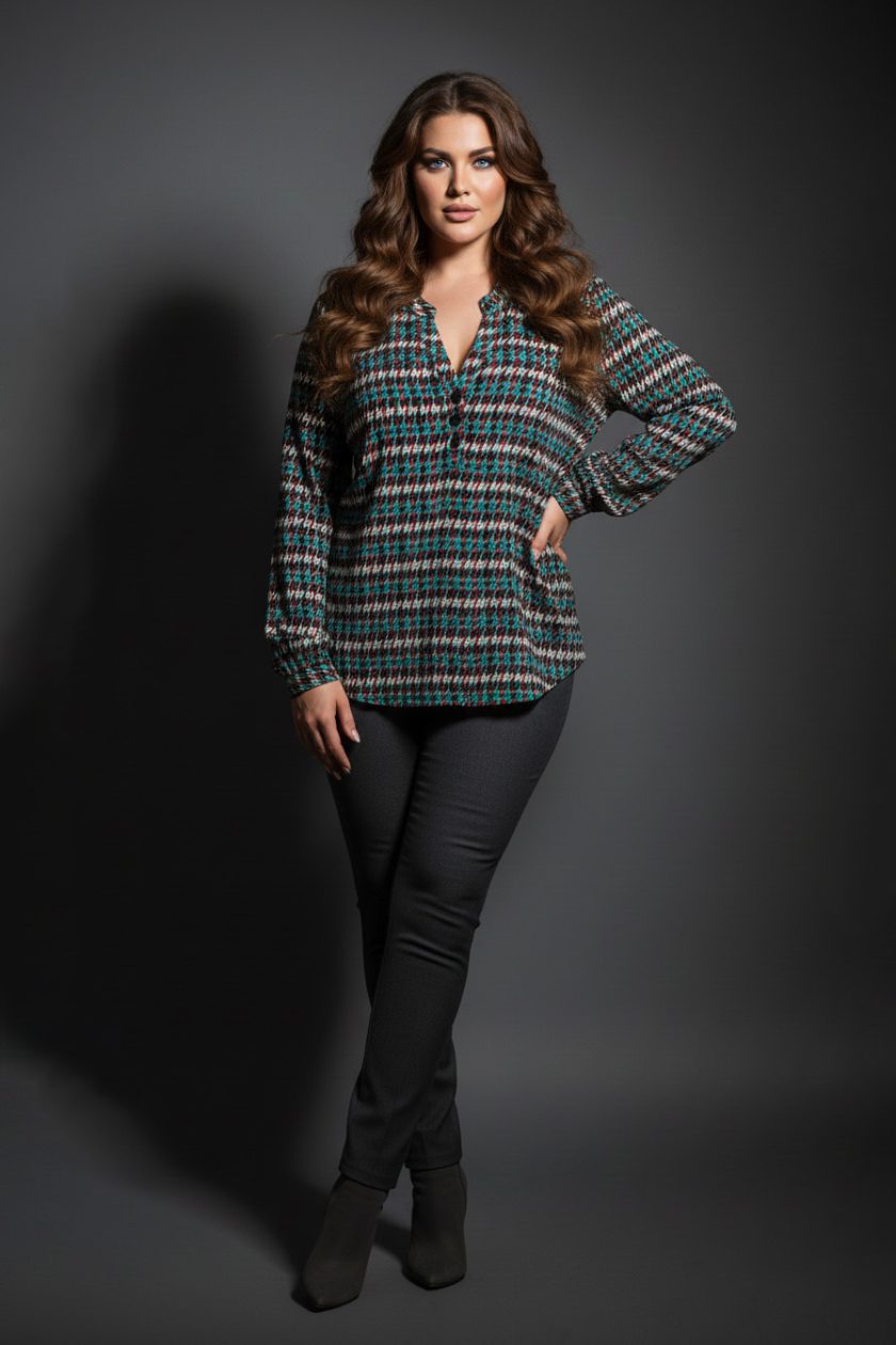 ΚΩΔΙΚΟΣ: alex0124gkaroΓυναικεία Μπλούζα Με Μοτίβο Τύπου Καρό Με 3 Κουμπιά σε Ψιλό Πλεκτό Curve-Plus Size