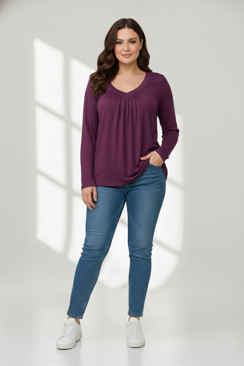 ΚΩΔΙΚΟΣ: alex0130VSNΓυναικεία Μπλούζα V Βυσσινι σε Ψιλό Πλεκτό Curve-Plus Size
