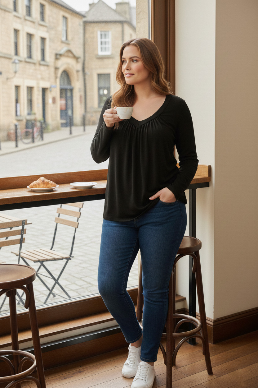 ΚΩΔΙΚΟΣ: alex0125blkΓυναικεία Μπλούζα Με V Λεπτό Πλεκτό Μαύρο Curve-Plus Size
