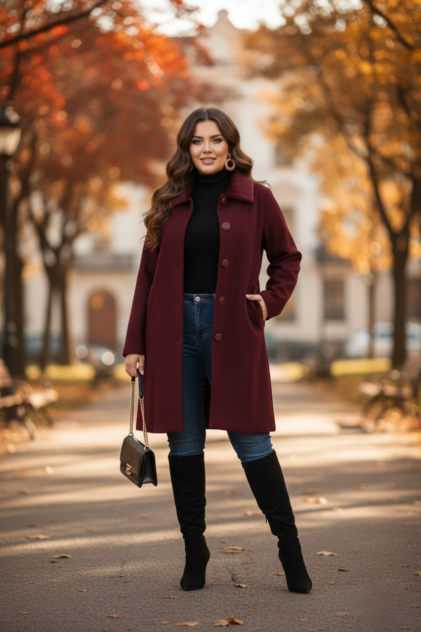 ΚΩΔΙΚΟΣ: palzak1305brdΓυναικεία Παλτοζακέτα Βαμβακερή Μπορντό Με Κουμπιά & Τσέπες Curve-Plus Size
