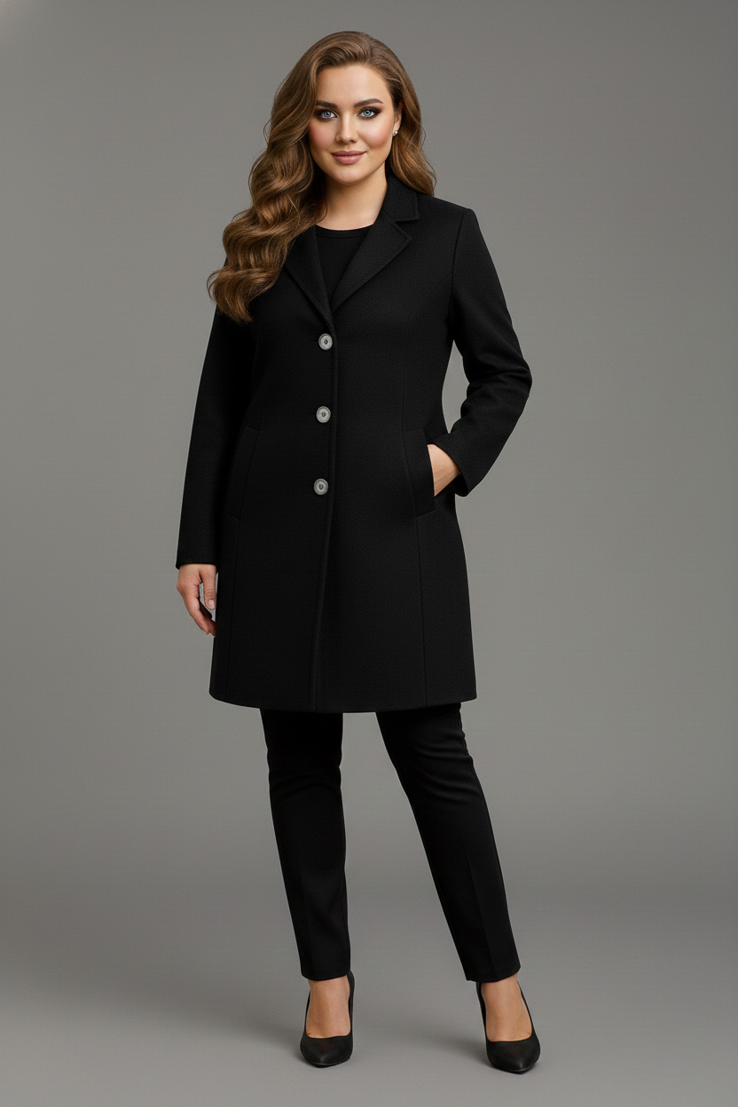 ΚΩΔΙΚΟΣ: 7102blackΓυναικεία Γυναικείο Παλτό βελούρ Με Τσέπες, Μαύρο Curve-Plus Size