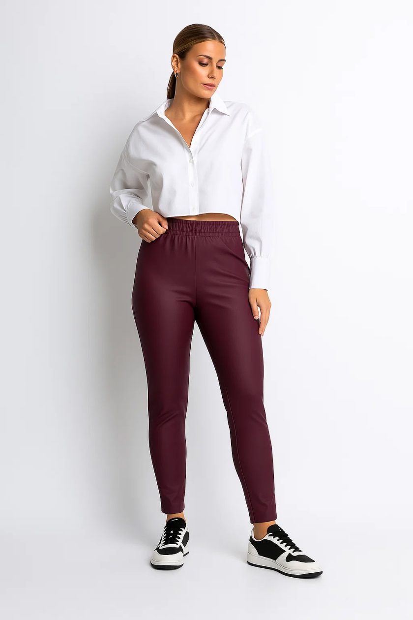 Γυναικείο Παντελόνι Δερματίνη Κολάν Μπορντό Curve-Plus Size