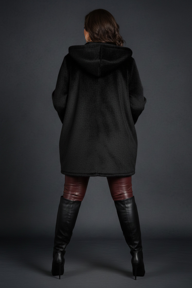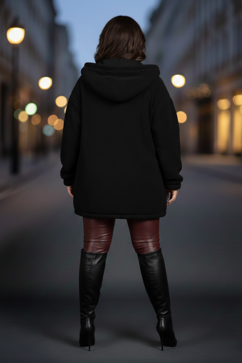 ΚΩΔΙΚΟΣ: zak7011blkΓυναικεία Ζακέτα Μαύρη Τύπου γούνινη Με Κουκούλα Curve-Plus Size