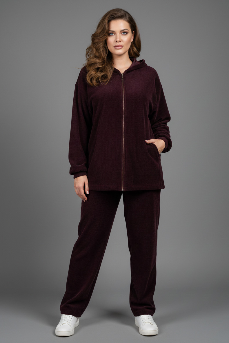 ΚΩΔΙΚΟΣ: 1100daΓυναικείο Σετ Ριπ Παντελόνι και Ζακέτα Χρώμα Δαμασκηνί Plus Size