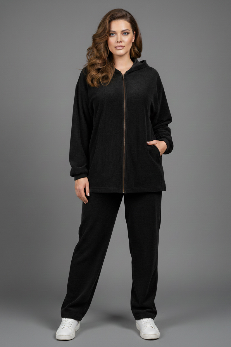 ΚΩΔΙΚΟΣ: 1100blkΓυναικείο Σετ Ριπ Παντελόνι και Ζακέτα Χρώμα Μαύρο Plus Size