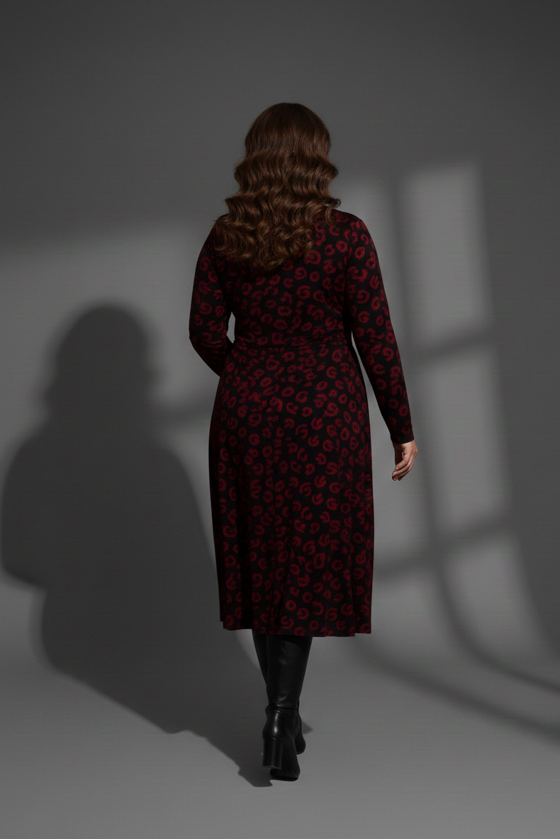 ΚΩΔΙΚΟΣ: alex4021Γυναικείο Φόρεμα Κρουαζέ Λεπτό Πλεκτό Μαύρο με αφηρημένο μοτίβο σε σκούρο κόκκινο Print Plus size