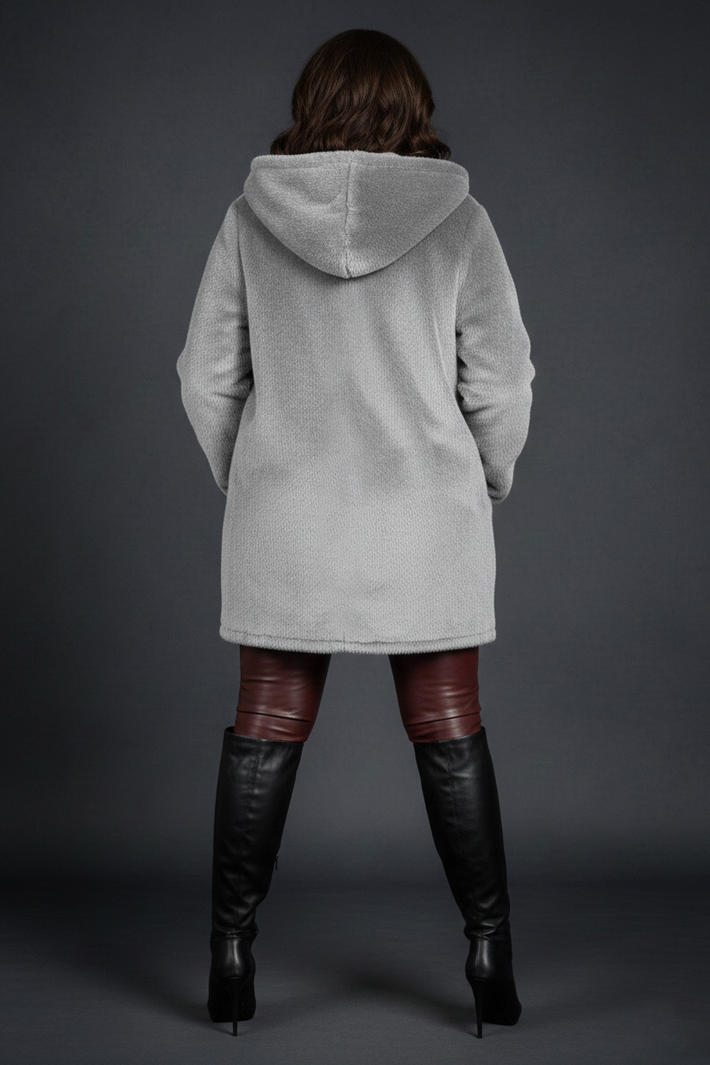 ΚΩΔΙΚΟΣ: zak7011griΓυναικεία Ζακέτα Γκρι Τύπου Γούνινη Με Κουκούλα Curve-Plus Size
