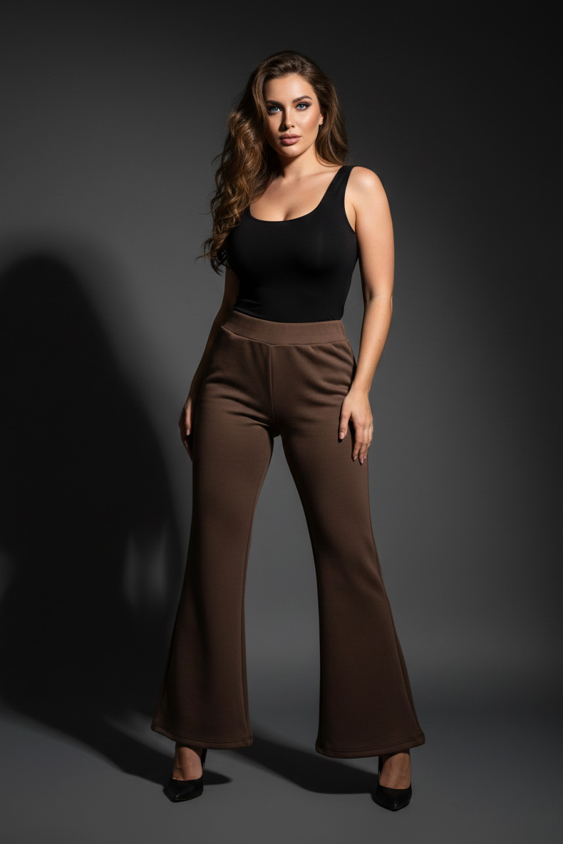 ΚΩΔΙΚΟΣ: 7101cafeΓυναικείο Παντελόνι Φούτερ Καμπάνα Καφέ Με Λάστιχο, αχνούδιαστο Plus size