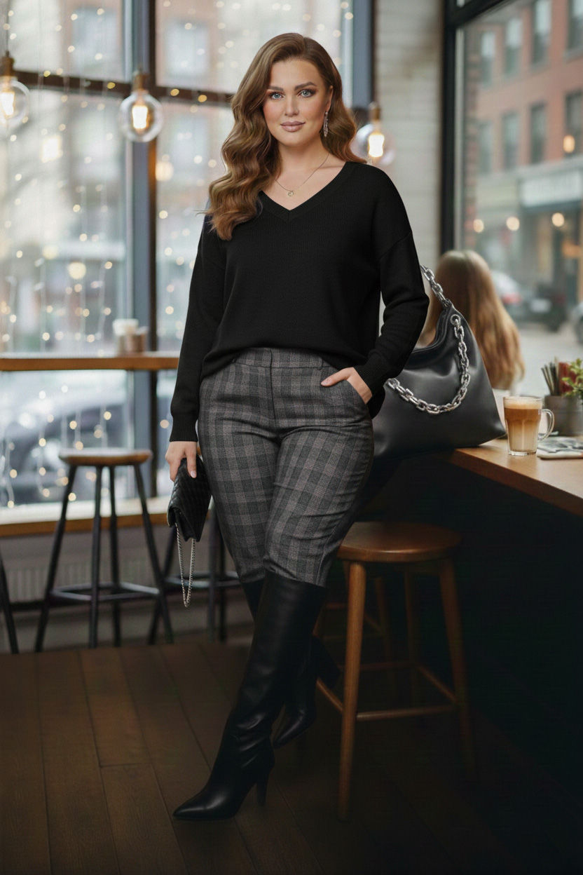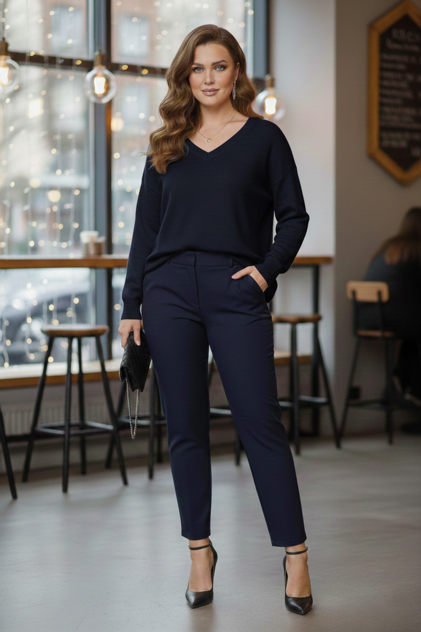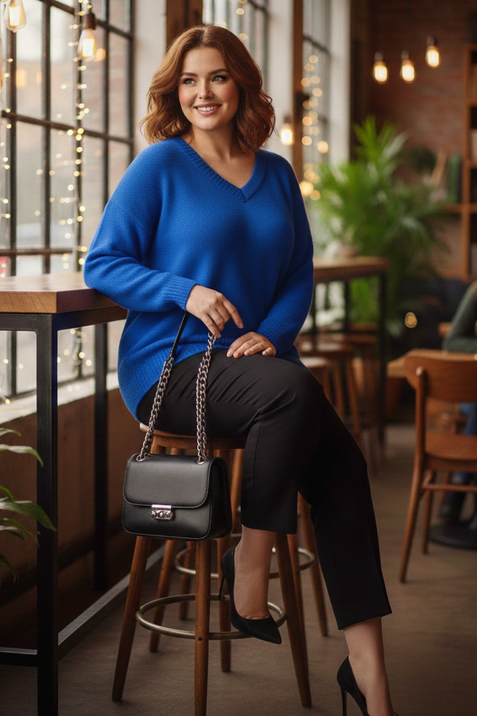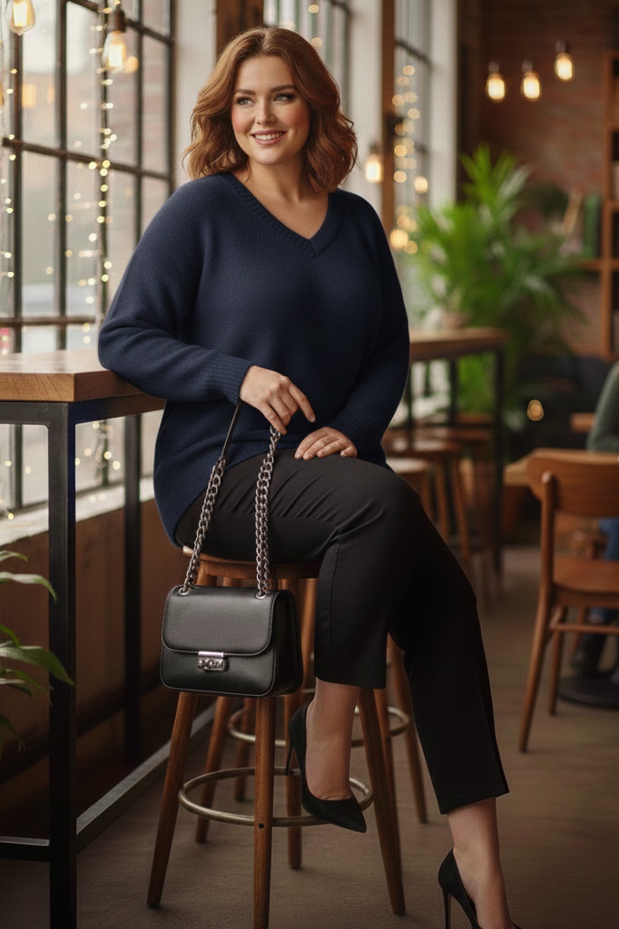 Γυναικεία Μπλούζα Μπλε Σκούρο Πλεκτή ελαστική V Curve-Plus Size