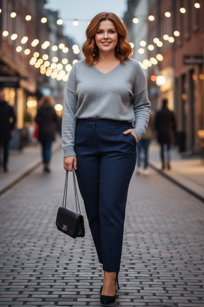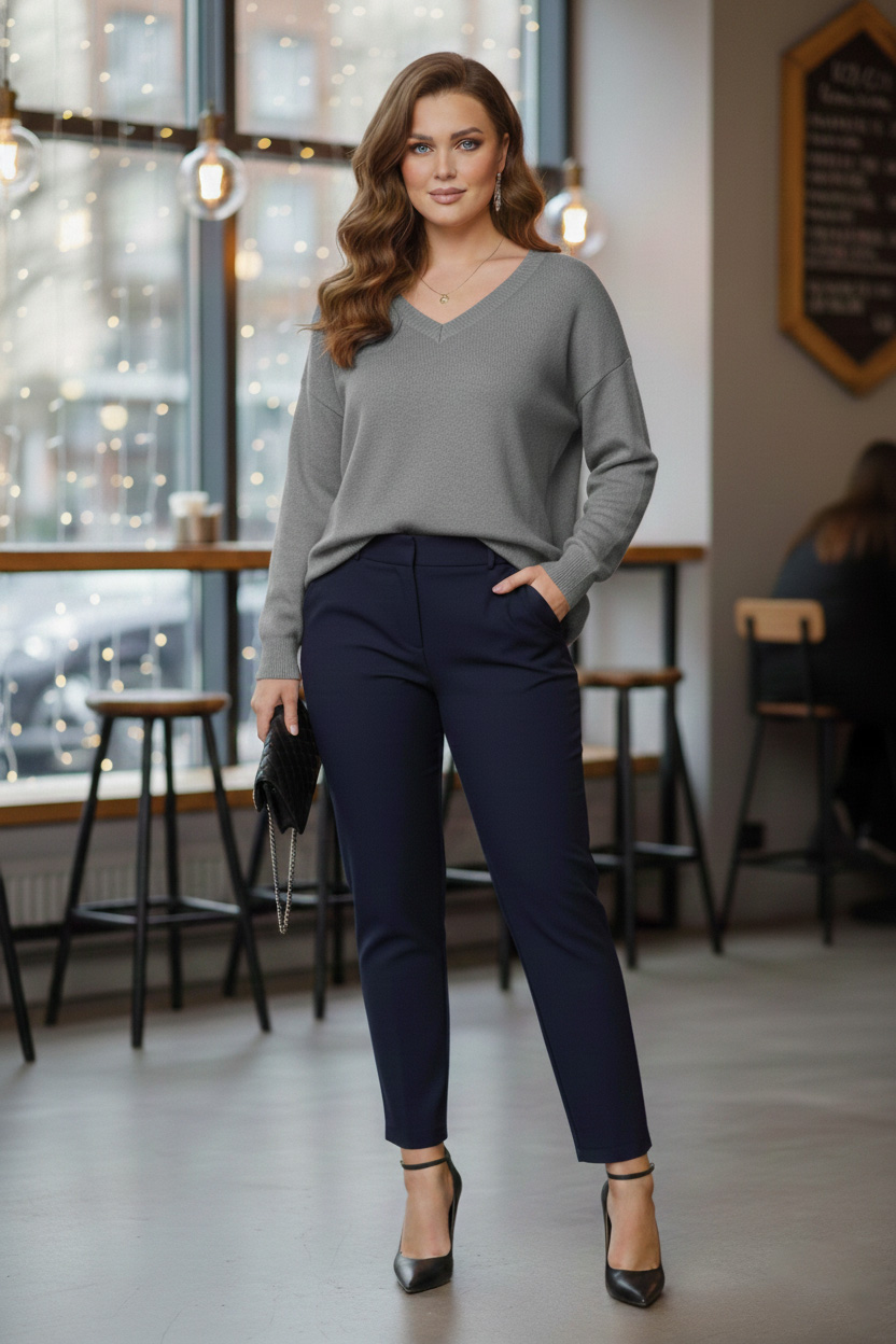 Γυναικεία Μπλούζα Γκρι Πλεκτή ελαστική V Curve-Plus Size