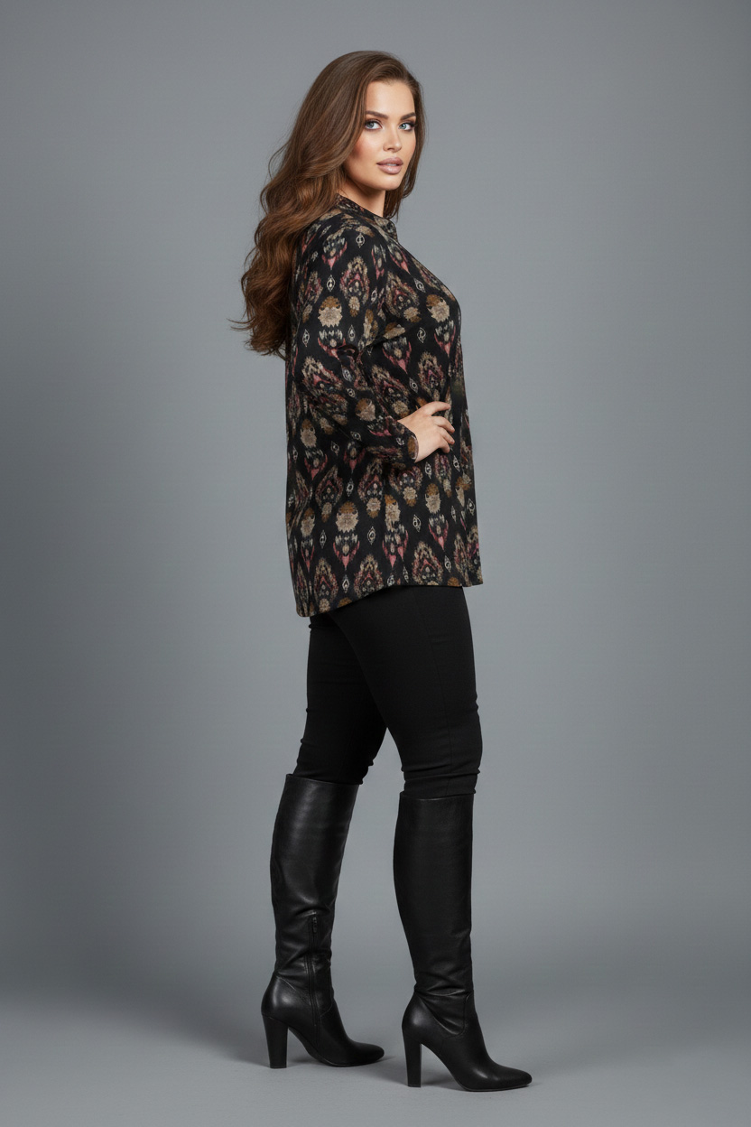Γυναικεία Μπλούζα Λεπτό Πλεκτό boho/ethnic Μοτίβο Με 3 Κουμπιά ελαστική Curve-Plus Size