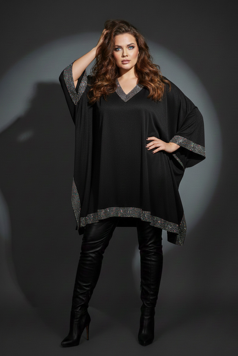 Γυναικεία Μπλούζα Μαύρη Με Κόκκινο Μοτίβο Λεπτό Πλεκτό Με Κουμπιά ελαστική Curve-Plus Size