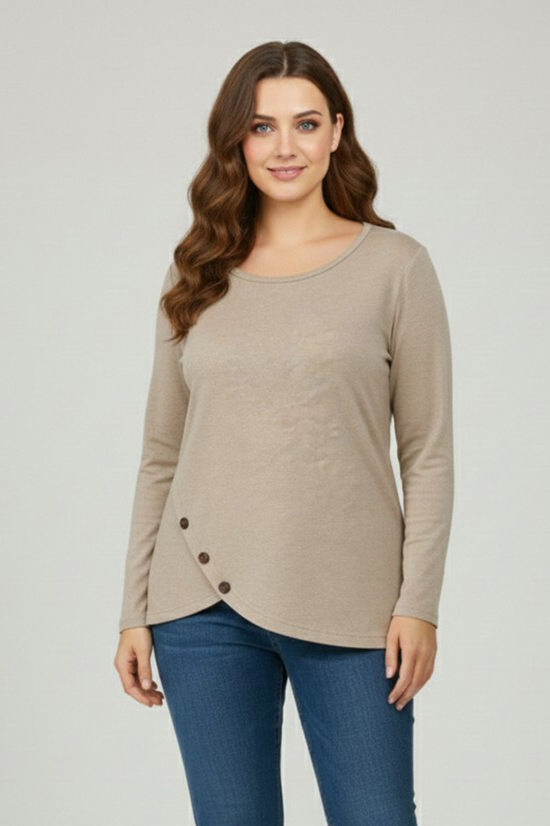 Γυναικεία Μπλούζα Με Διακοσμητικά Κουμπιά Λεπτό Πλεκτό Μπεζ  Curve-Plus Size