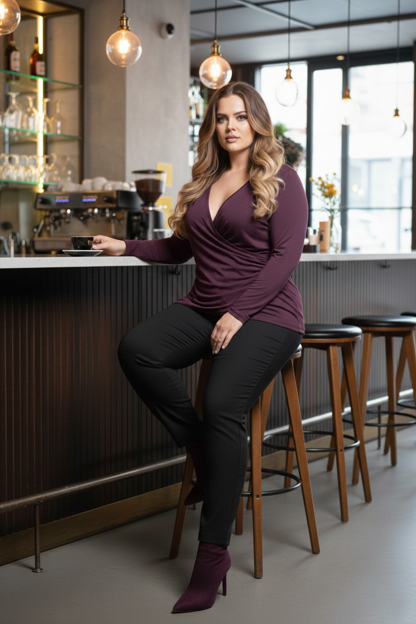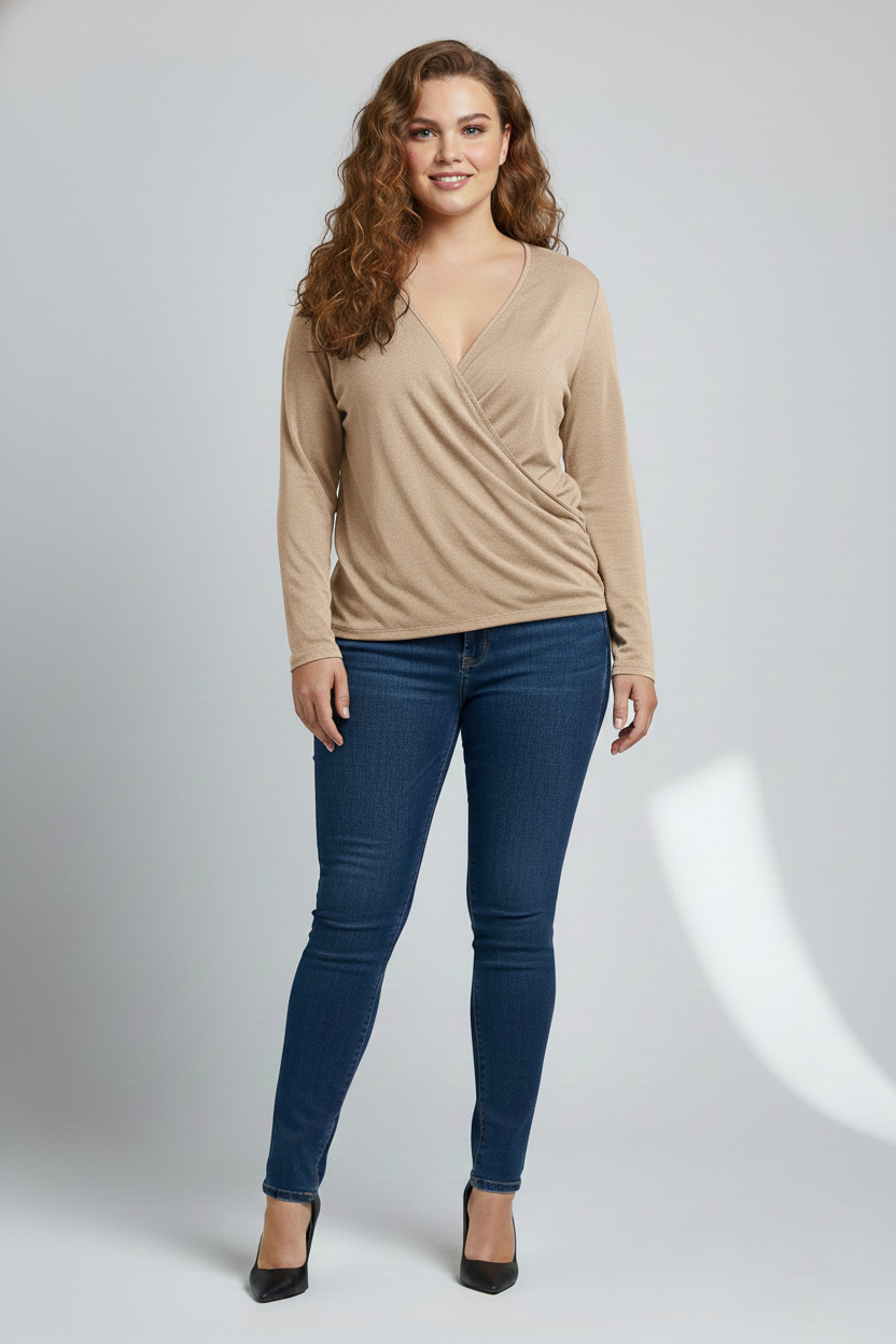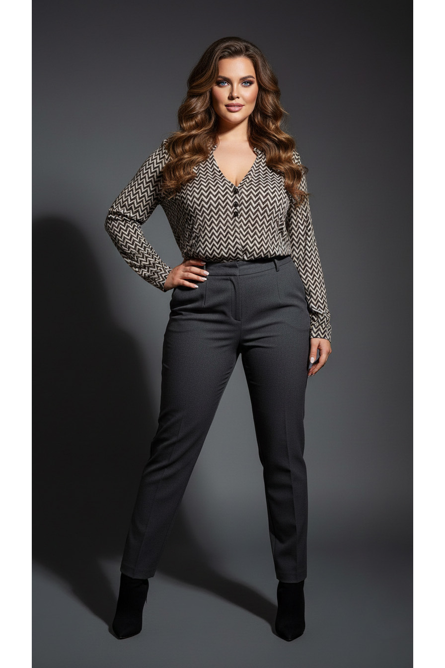 Γυναικεία Μπλούζα Με Μοτίβο Ζικ Ζακ Με 3 Κουμπιά σε Ψιλό Πλεκτό Curve-Plus Size