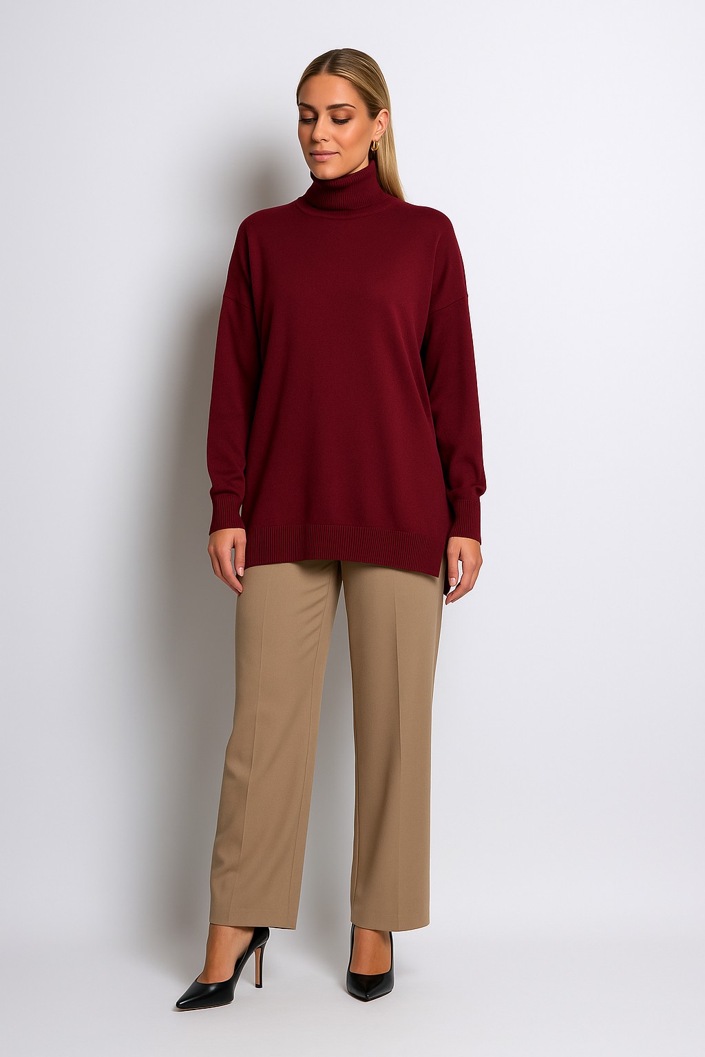 Γυναικεία Μπλούζα Πλεκτή ελαστική Ζιβάγκο Μπορντό Χρώμα Curve-Plus Size