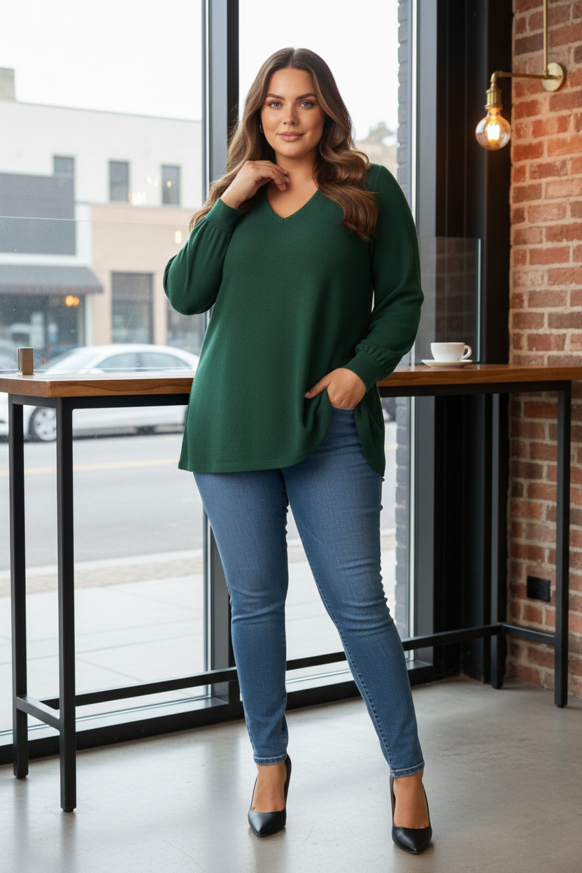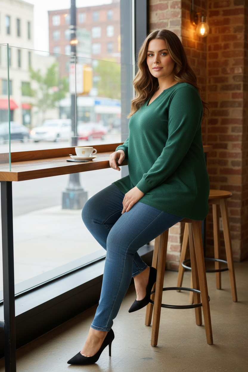 Γυναικεία Μπλούζα Πράσινη V σε Ψιλό Πλεκτό Curve-Plus Size