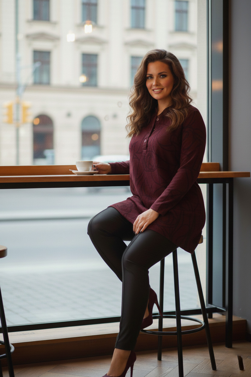 Γυναικεία Μπλούζα Πράσινο Με Μαύρο Μοτίβο Λεπτό Πλεκτό Με Κουμπιά ελαστική Curve-Plus Size