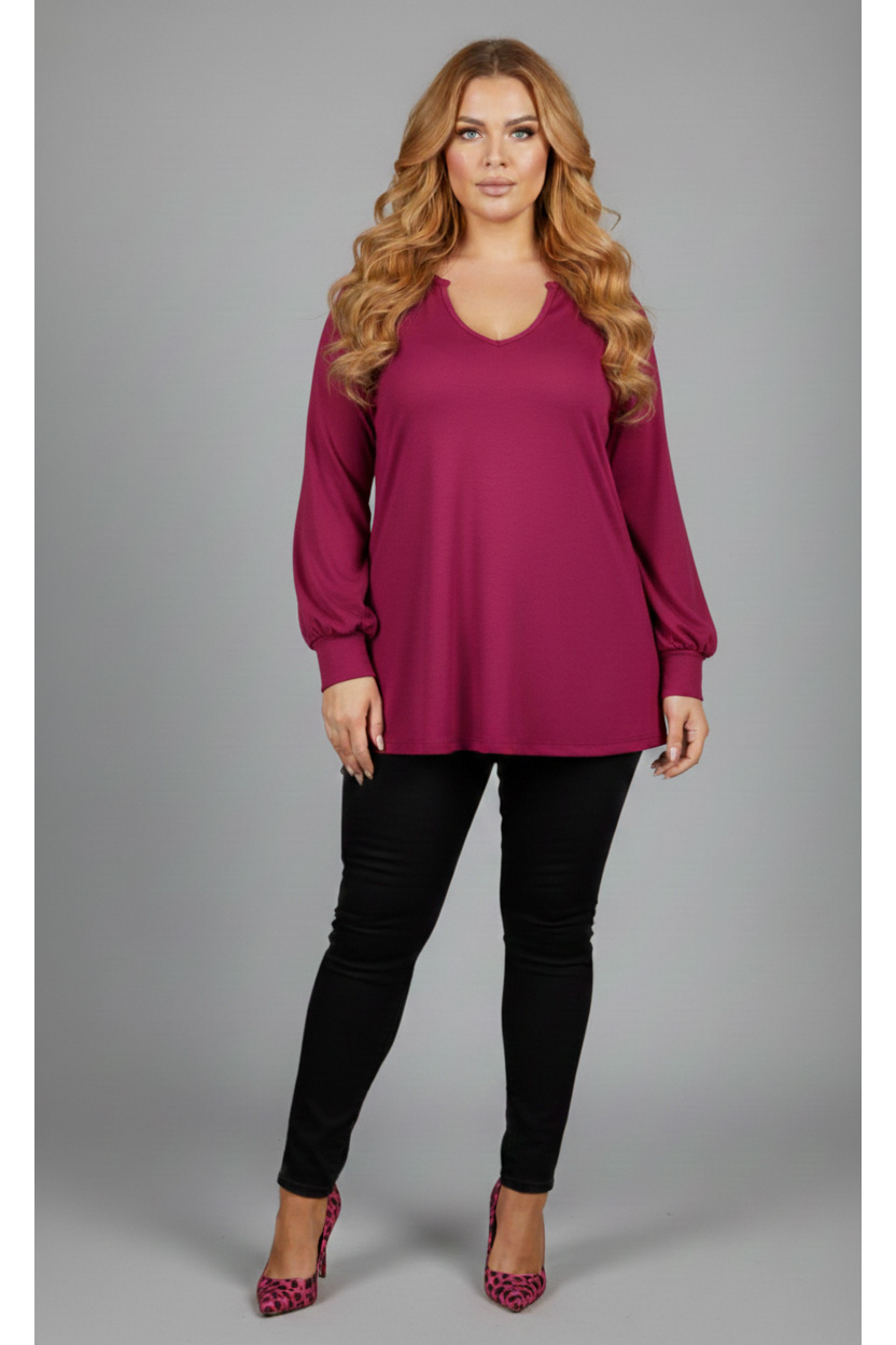Γυναικεία Μπλούζα Ροζ Σκούρο V σε Ψιλό Πλεκτό Curve-Plus Size