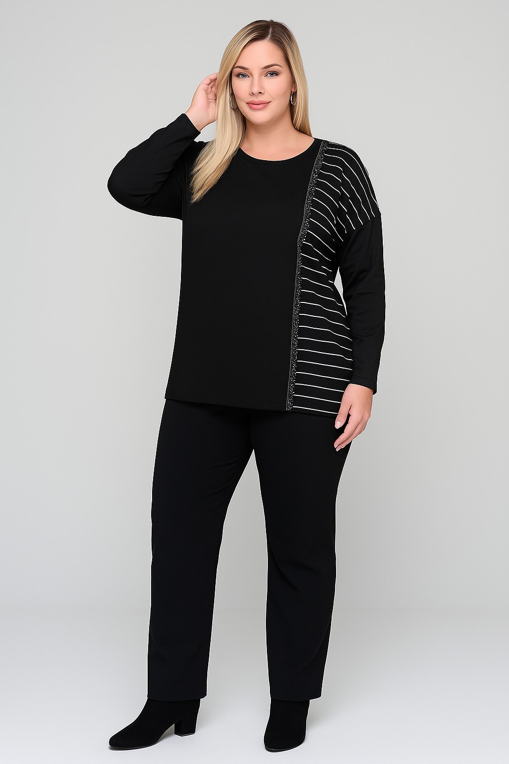 Γυναικεία Μπλούζα Viscose Μαύρη με Ρήγα Λευκή Plus Size