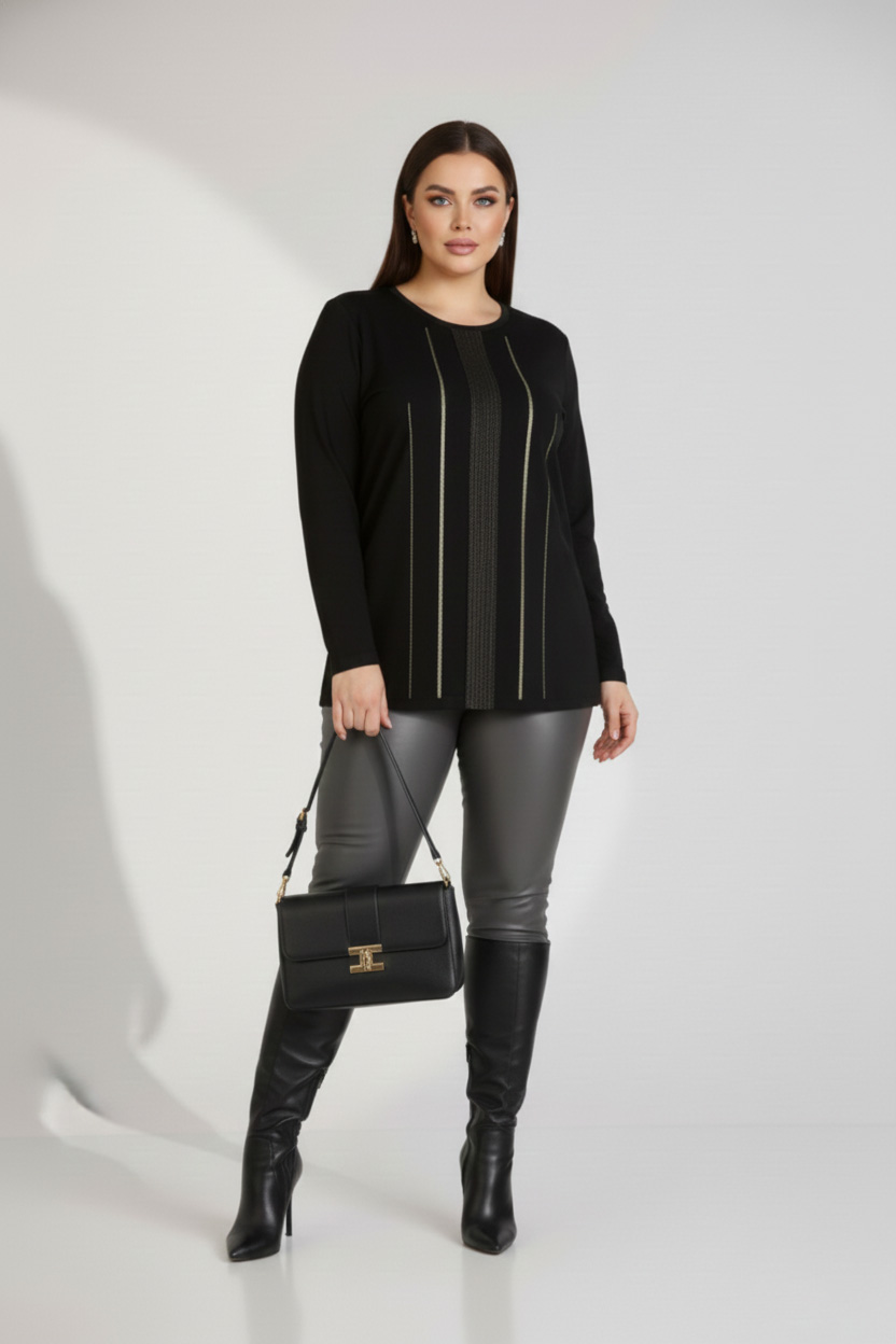 Γυναικεία Μπλούζα Viscose Μαύρο με κάθετες ρίγες Plus Sise