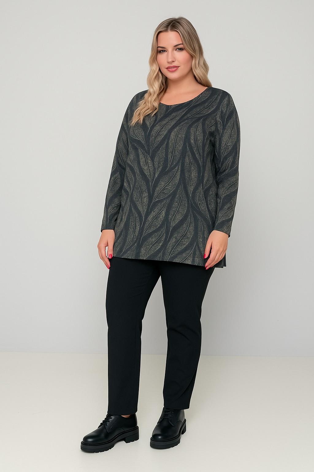 Γυναικεία Μπλούζα Xνουδωτό βισκοζ Over Size Γκρι/Ασημί με Μοτίβο Curve-Plus Size