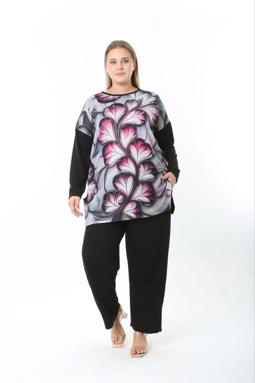 Γυναικεία Μπλούζα Xνουδωτό βισκοζ Pink Flowers Over Size Curve-Plus Size