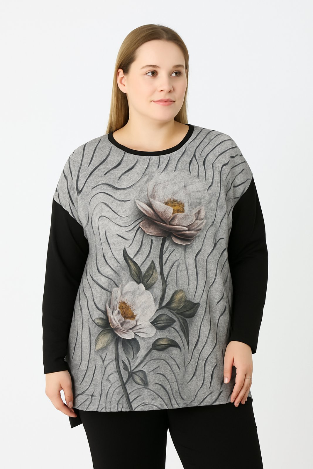 Γυναικεία Μπλούζα Xνουδωτό βισκοζ Two flowers Over Size Curve-Plus Size