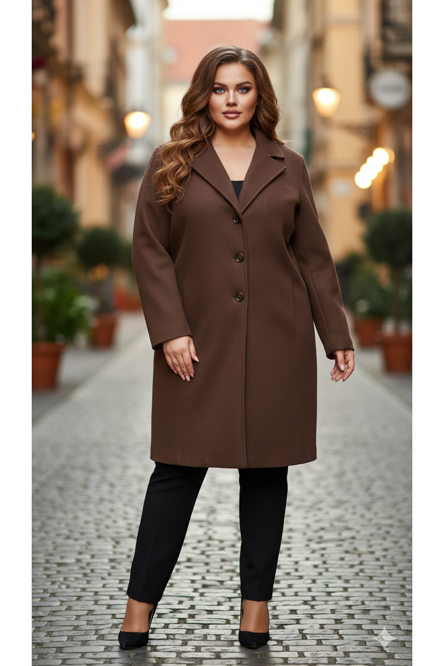 Γυναικεία Παλτό βελουρ Καφέ, πουρο Με Φόδρα Με 3 Κουμπιά Τσέπες Curve-Plus Size