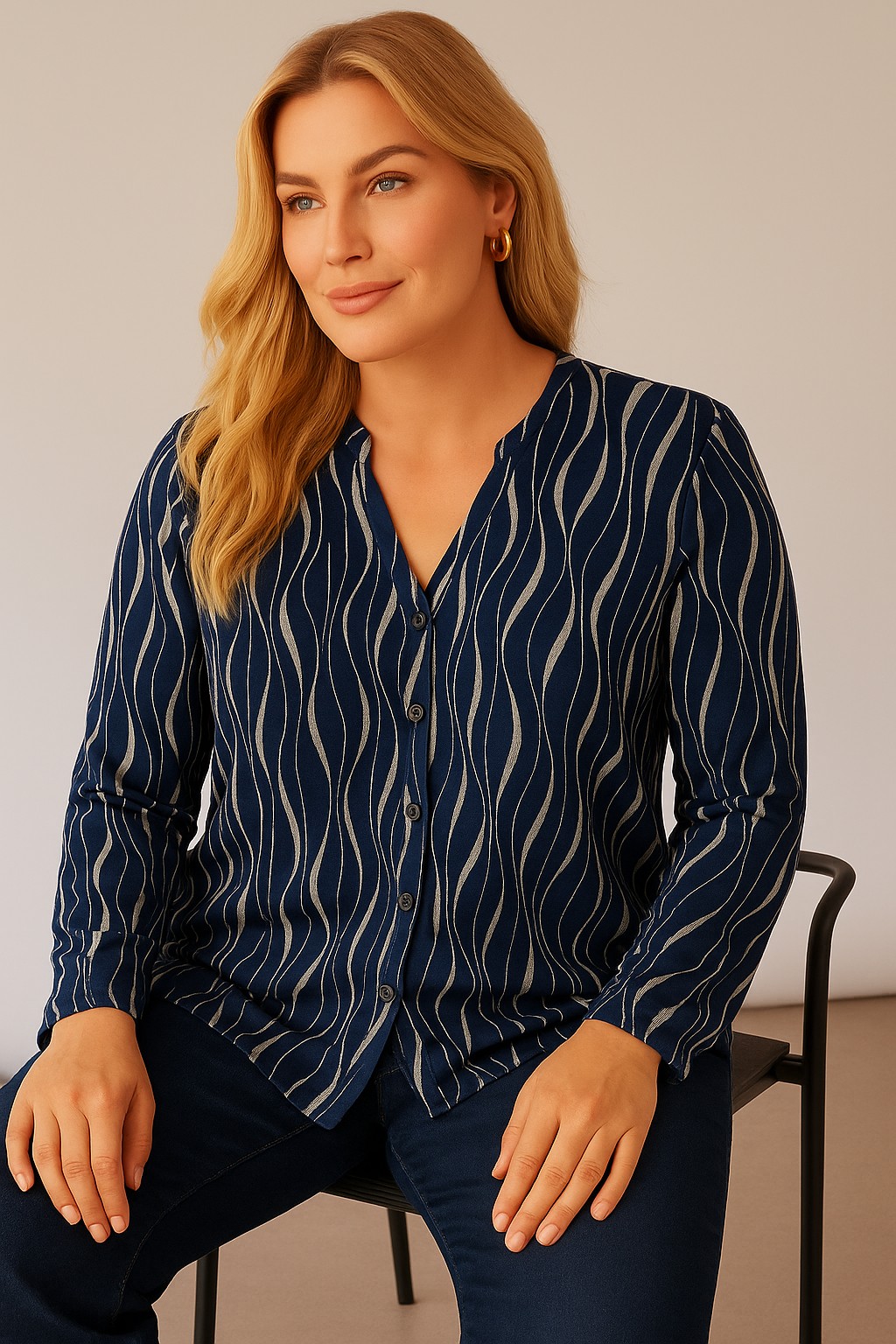 Γυναικεία Πουκάμισο Viscose Μπλε με Κυματιστή ρήγα Floral Ελαστικό Curve-Plus Size