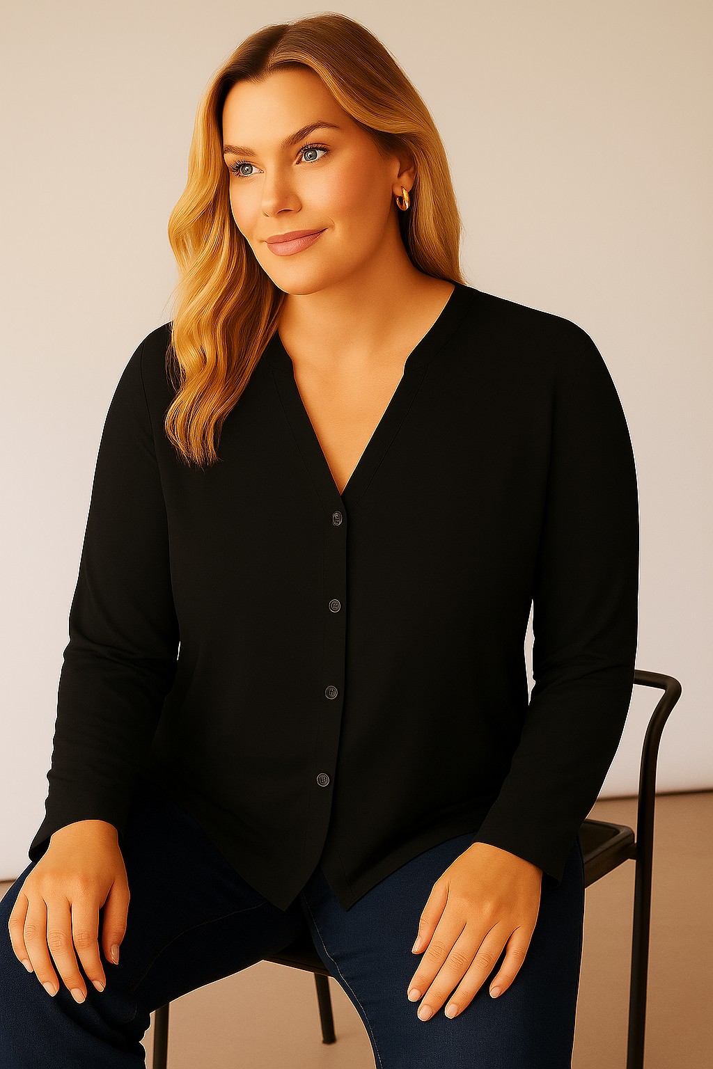 Γυναικείο Πουκάμισο Viscose Μαύρο Ελαστικό Curve-Plus Size