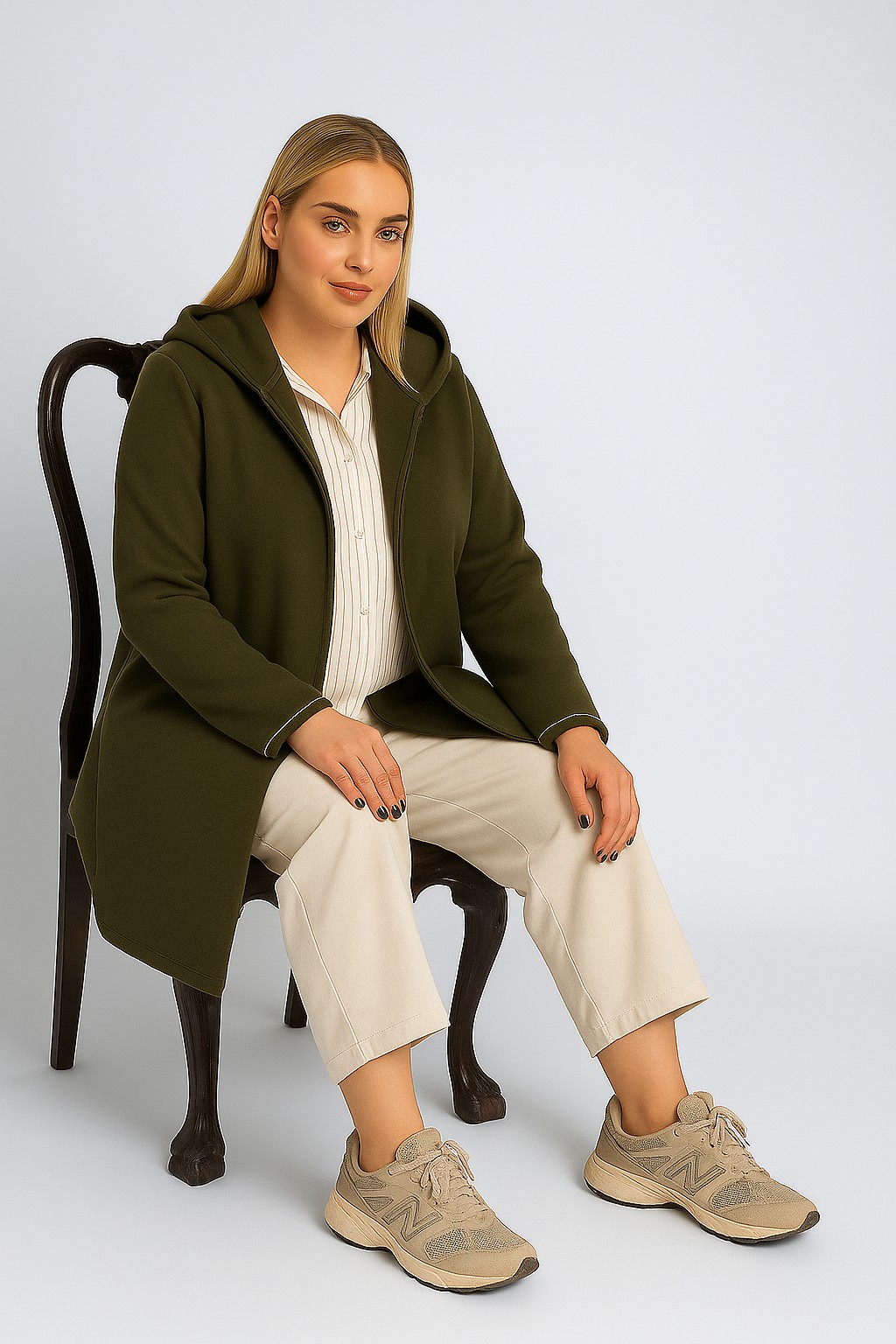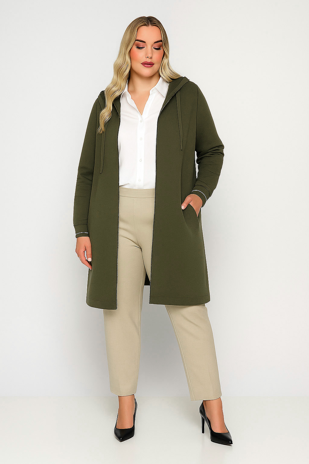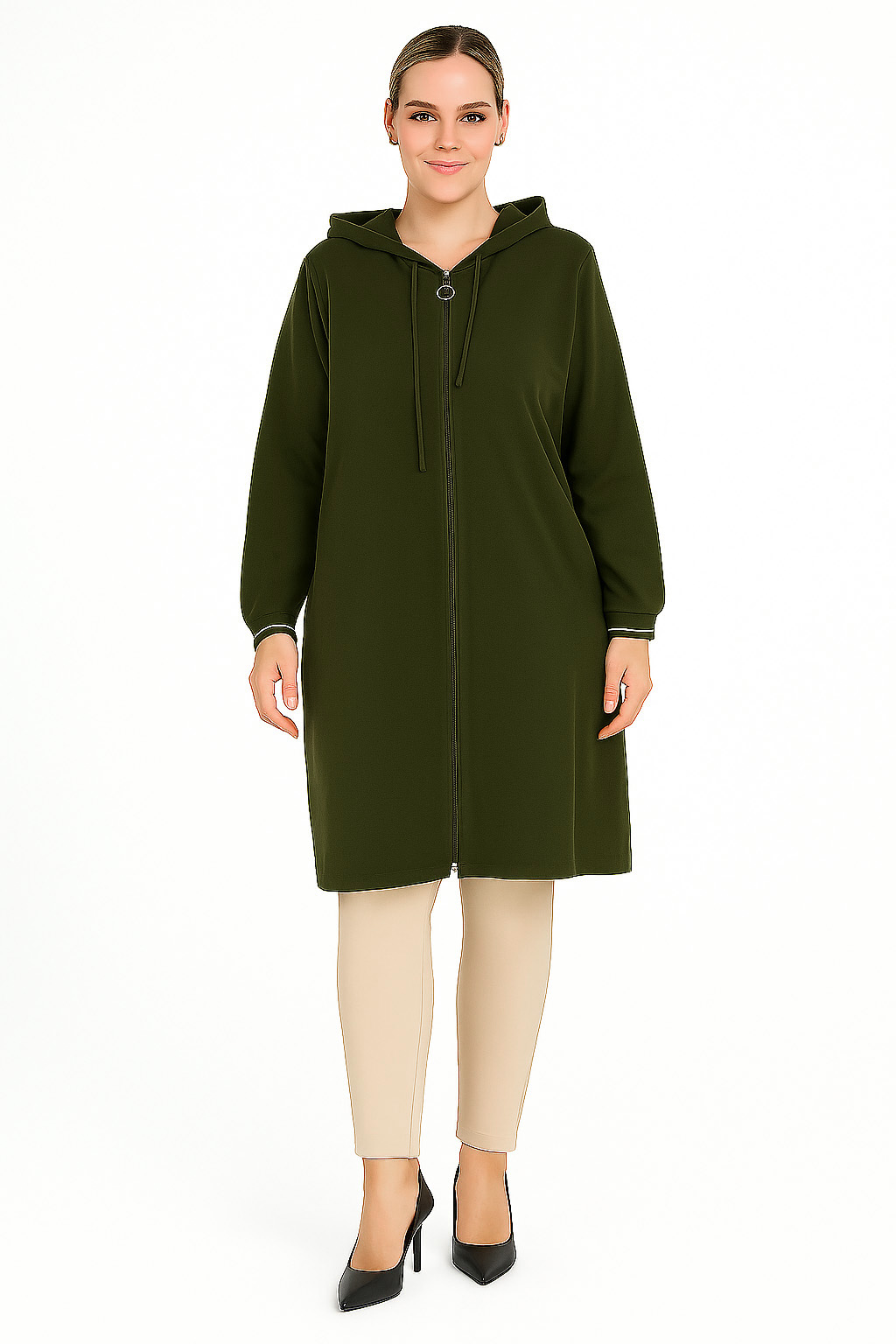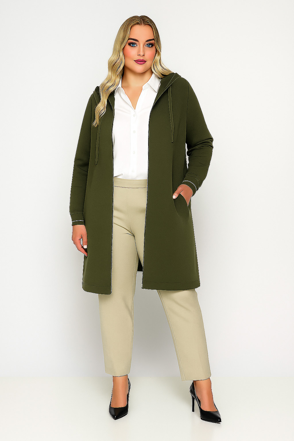 Γυναικεία Ζακέτα Χακί Με Κουκούλα & Τσέπες Curve-Plus Size