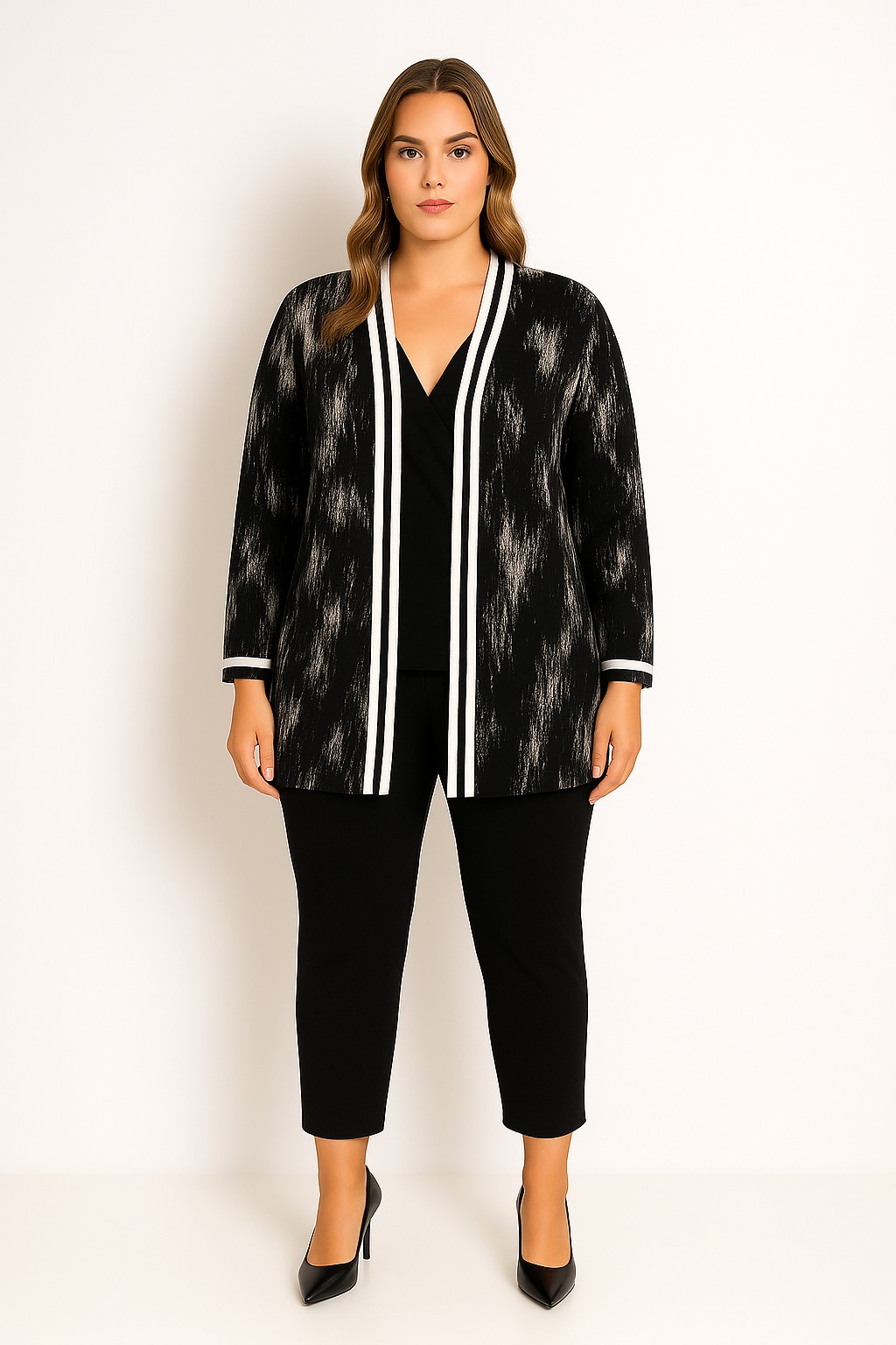 Γυναικεία Ζακέτα βισκοζ Μαύρη Με Σχέδια Plus Size