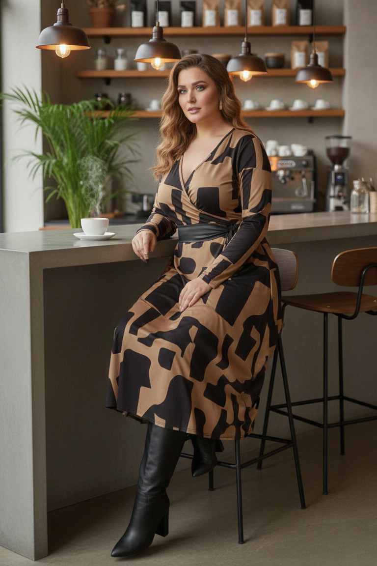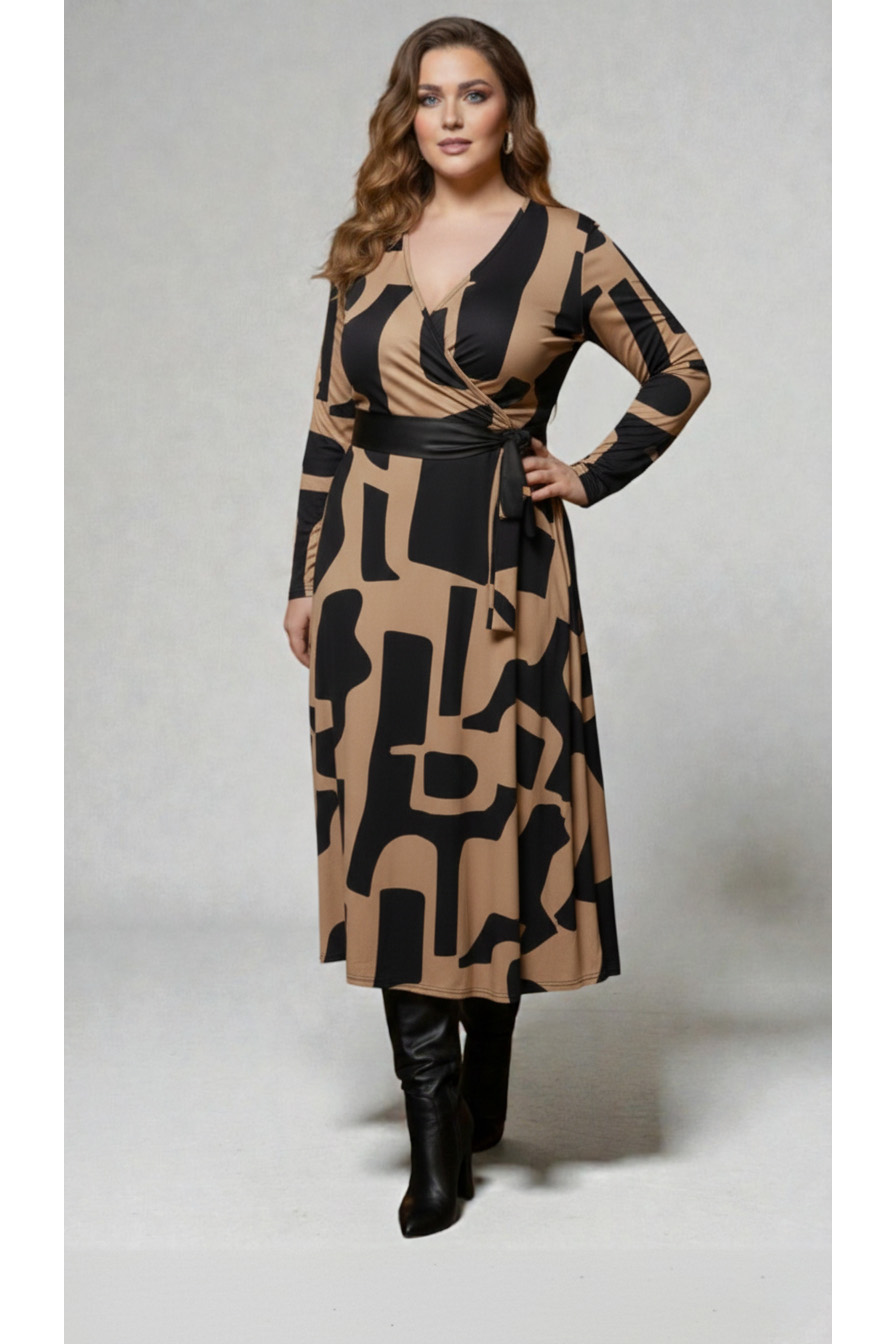 Γυναικείο Φόρεμα Χνουδωτό Βαμβακερό Μοκα Με Τσέπες Με Μοτίβο Μαύρο Plus size