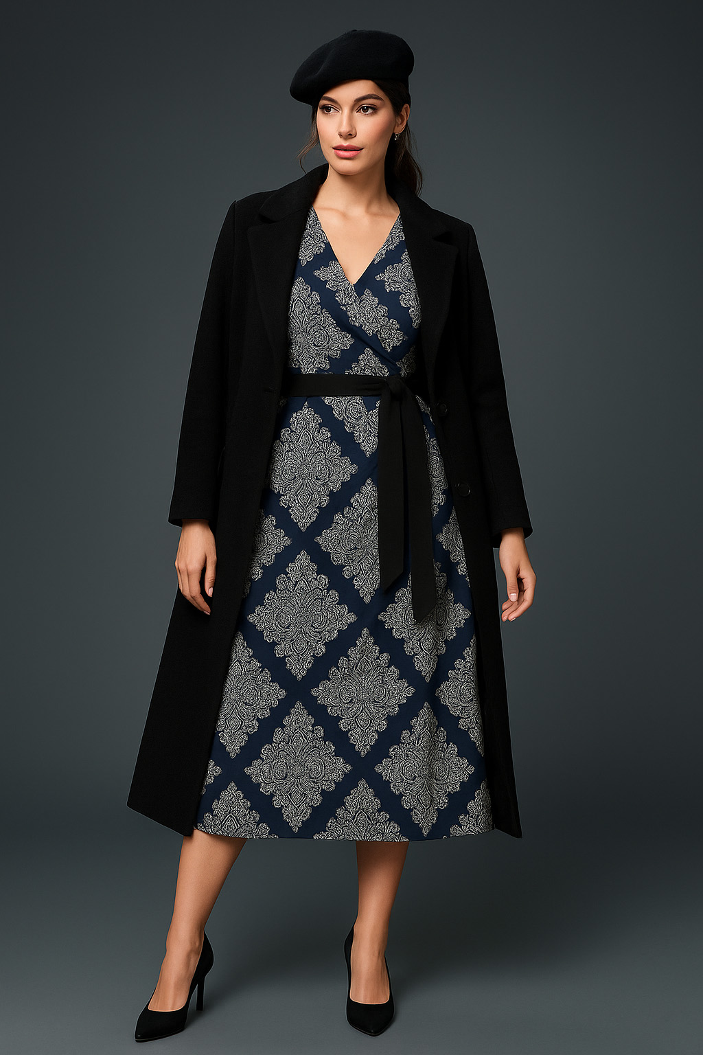 Γυναικείο Φόρεμα Χνουδωτό  Εμπριμέ Μπλε Με ΜοτίβοPlus size