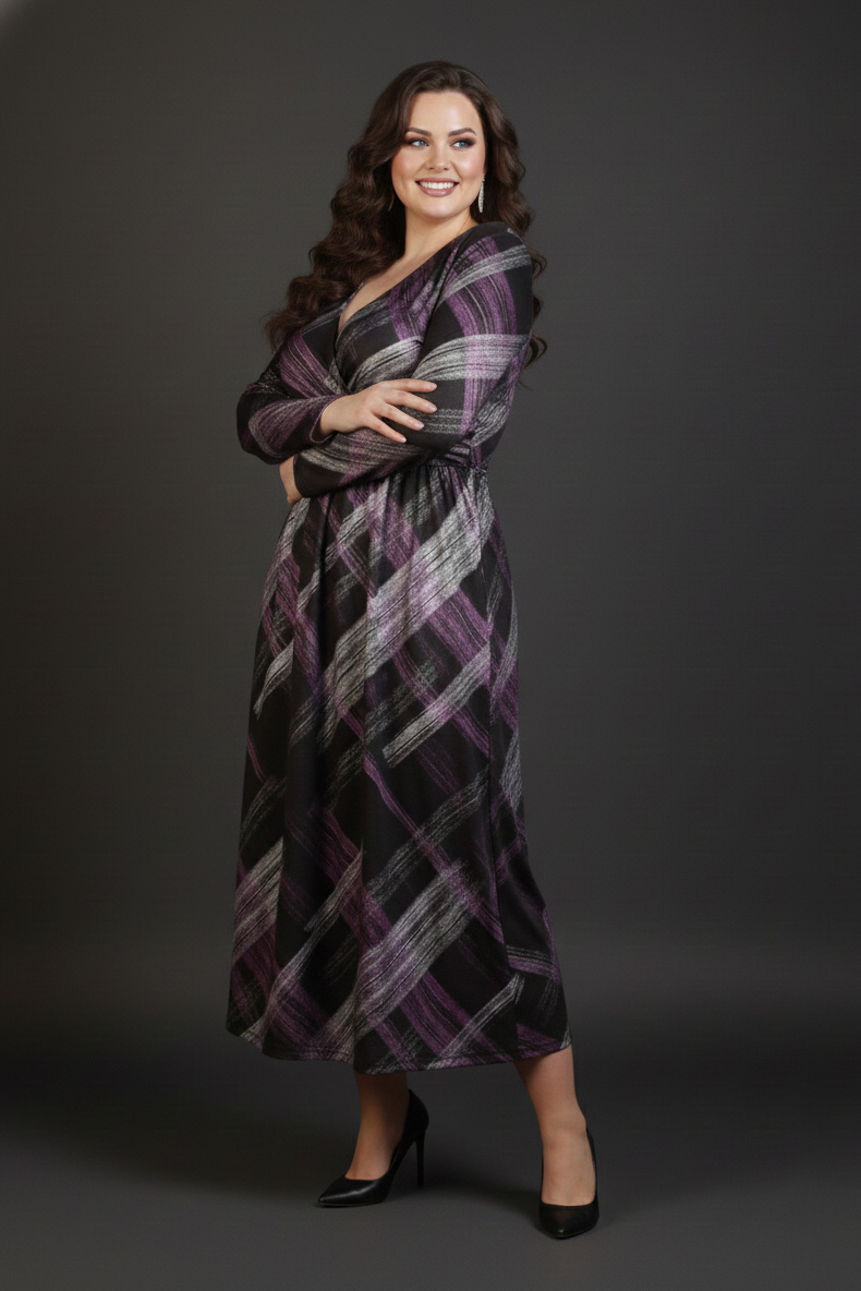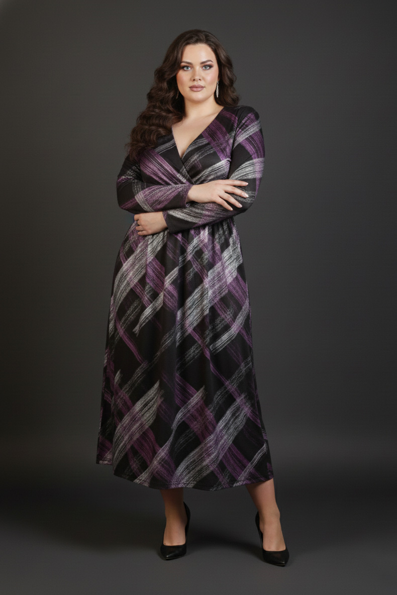 Γυναικείο Φόρεμα Πολύχρωμο Κρουαζέ Με Μαύρο Μοτίβο Plus size