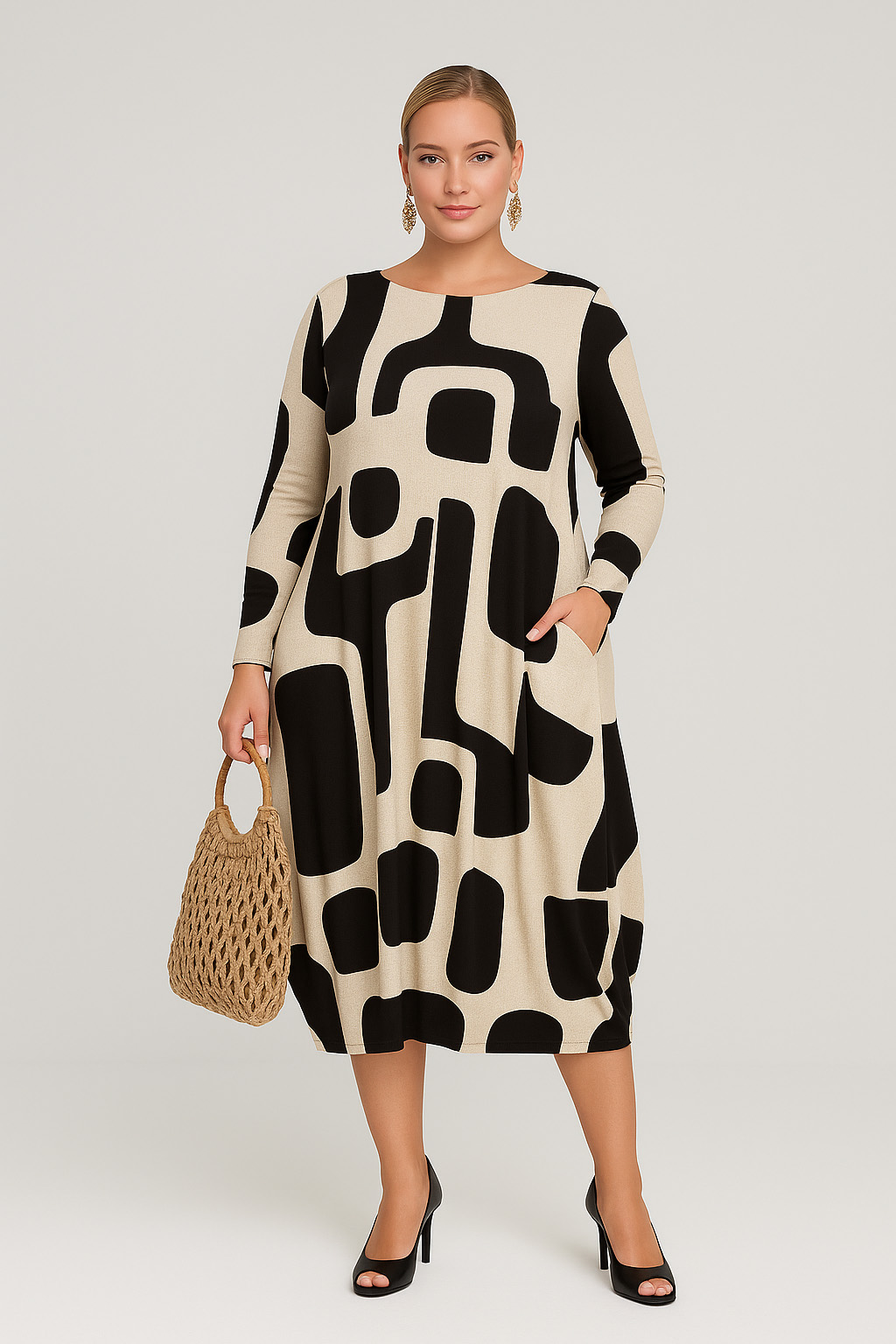 Γυναικείο Φόρεμα Σάκος Viscose Με Τσέπες Μοτίβο Plus size