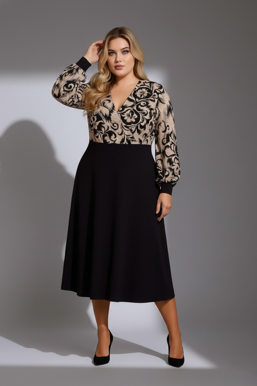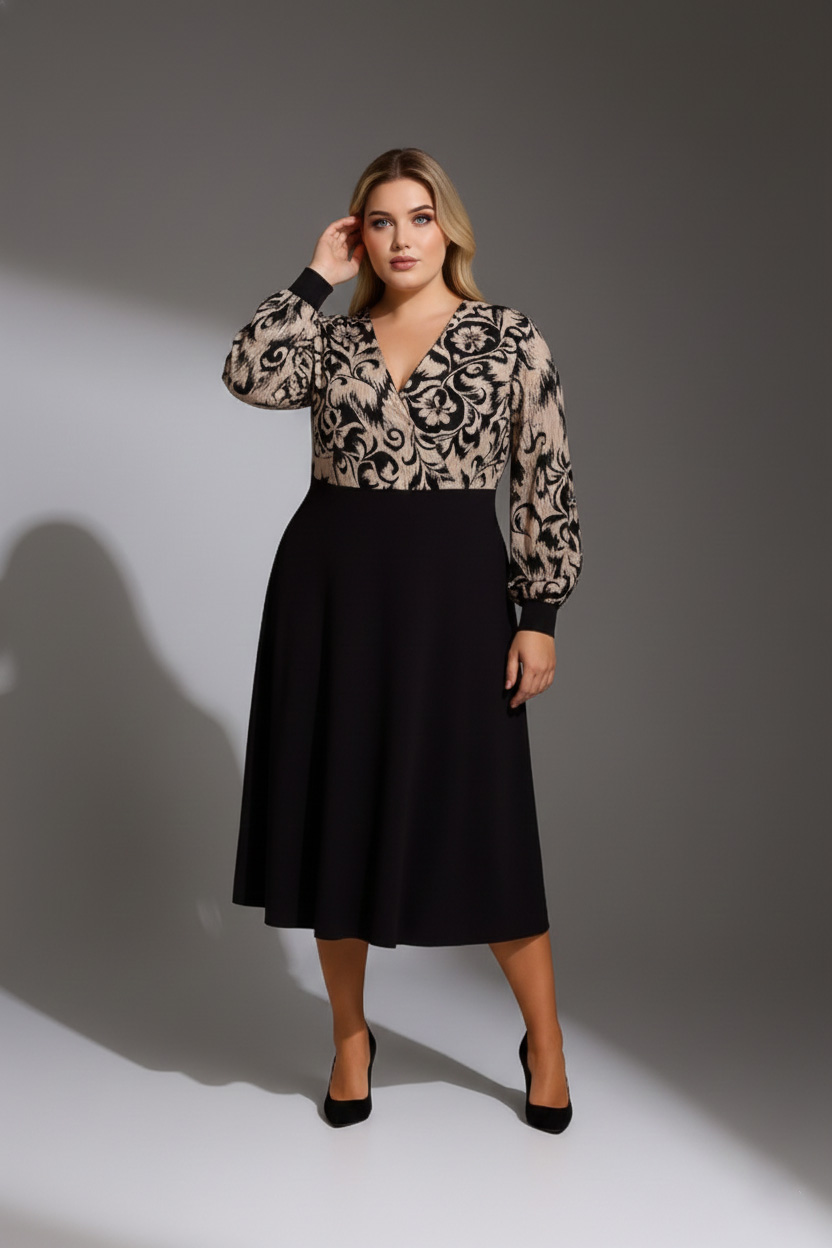 Γυναικείο Φόρεμα Viscose Μαύρη Με Floral Μοτιβο Curve-Plus Size