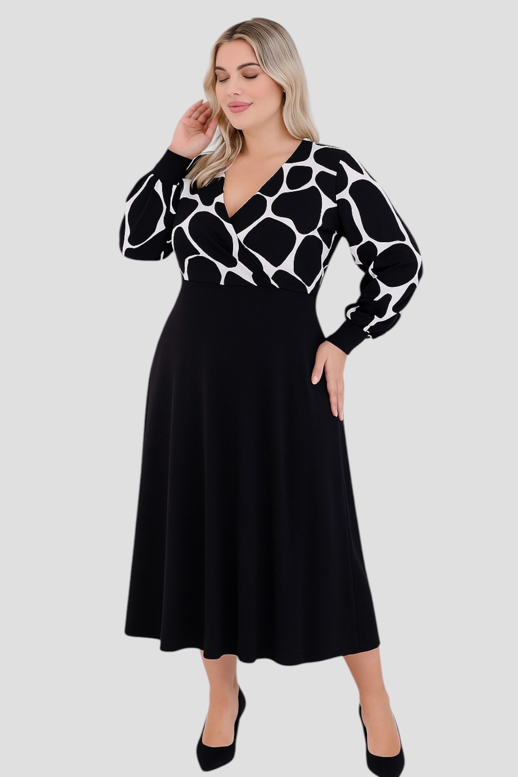 Γυναικείο Φόρεμα Viscose Μαύρη Με Print Zevra Curve-Plus Size