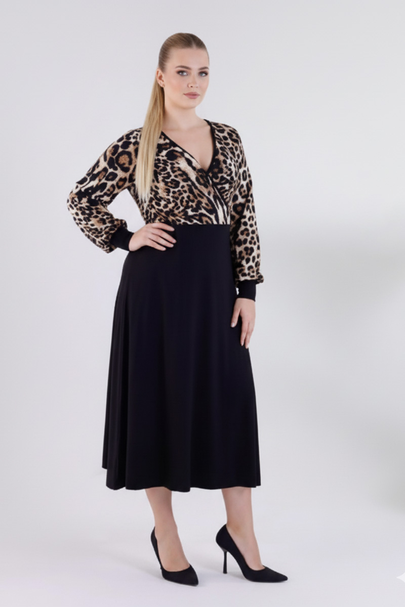 Γυναικείο Φόρεμα Voscose Μαύρο Print Leopard πάνω Curve-Plus Size