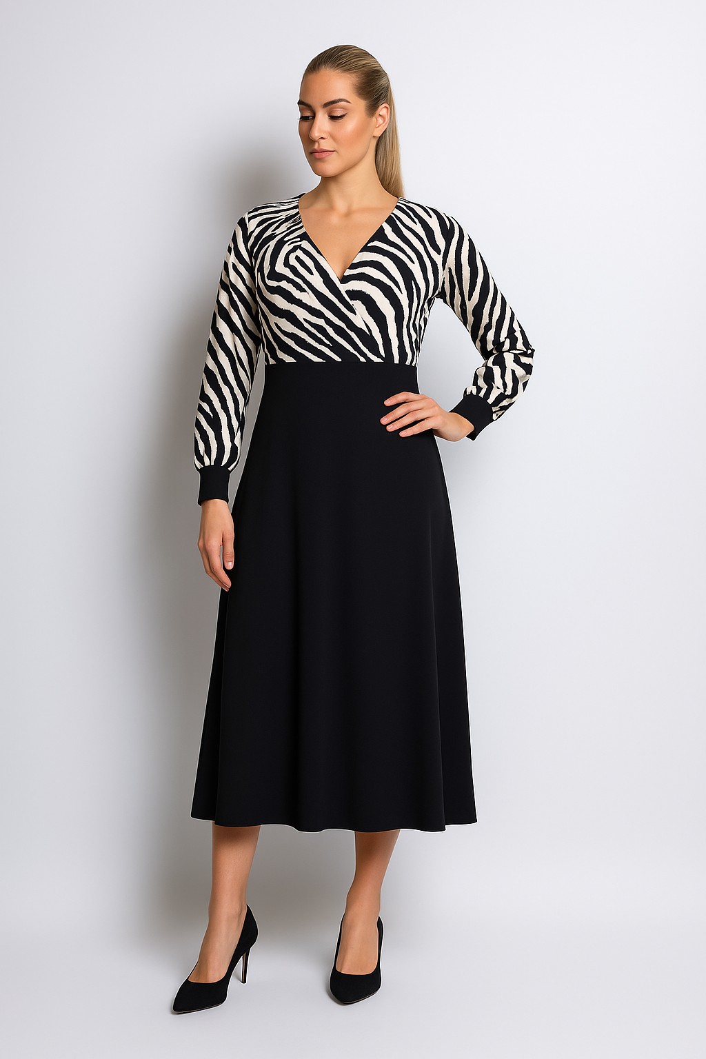 Γυναικείο Φόρεμα Viscose Μαύρο Print zevra πάνω Curve-Plus Size