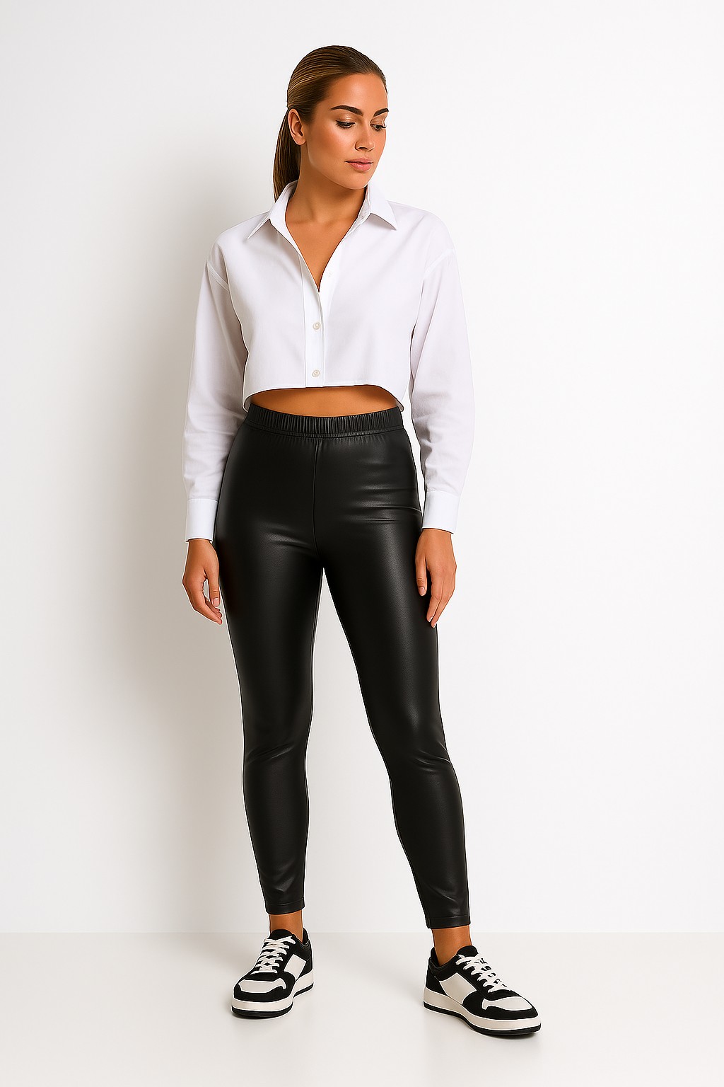Γυναικείο Παντελόνι Δερματίνη Κολάν Μαύρο ΜαύCurve-Plus Size