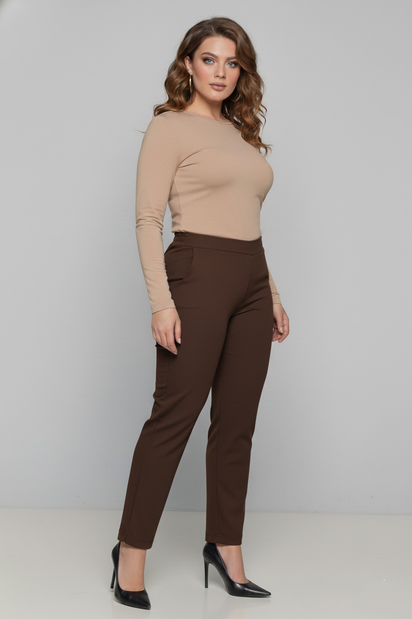 Γυναικείο Παντελόνι Καφέ Με Λάστιχο Πίσω Plus size