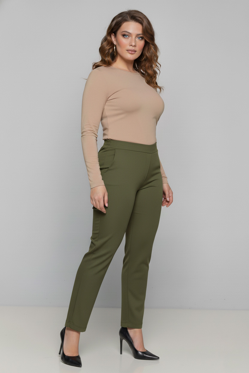Γυναικείο Παντελόνι Λαδί Με Λάστιχο Πίσω Plus size