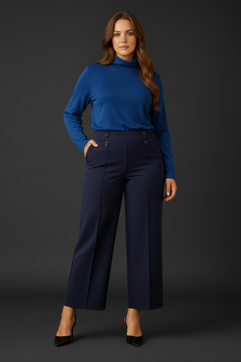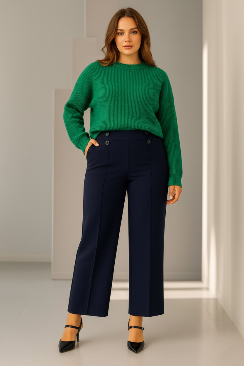 Γυναικείο Παντελόνι Με τσέπες Μπλε Κρεπ Με Λάστιχο Plus size