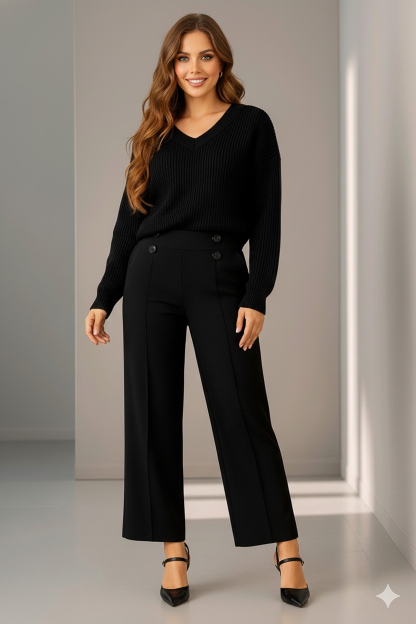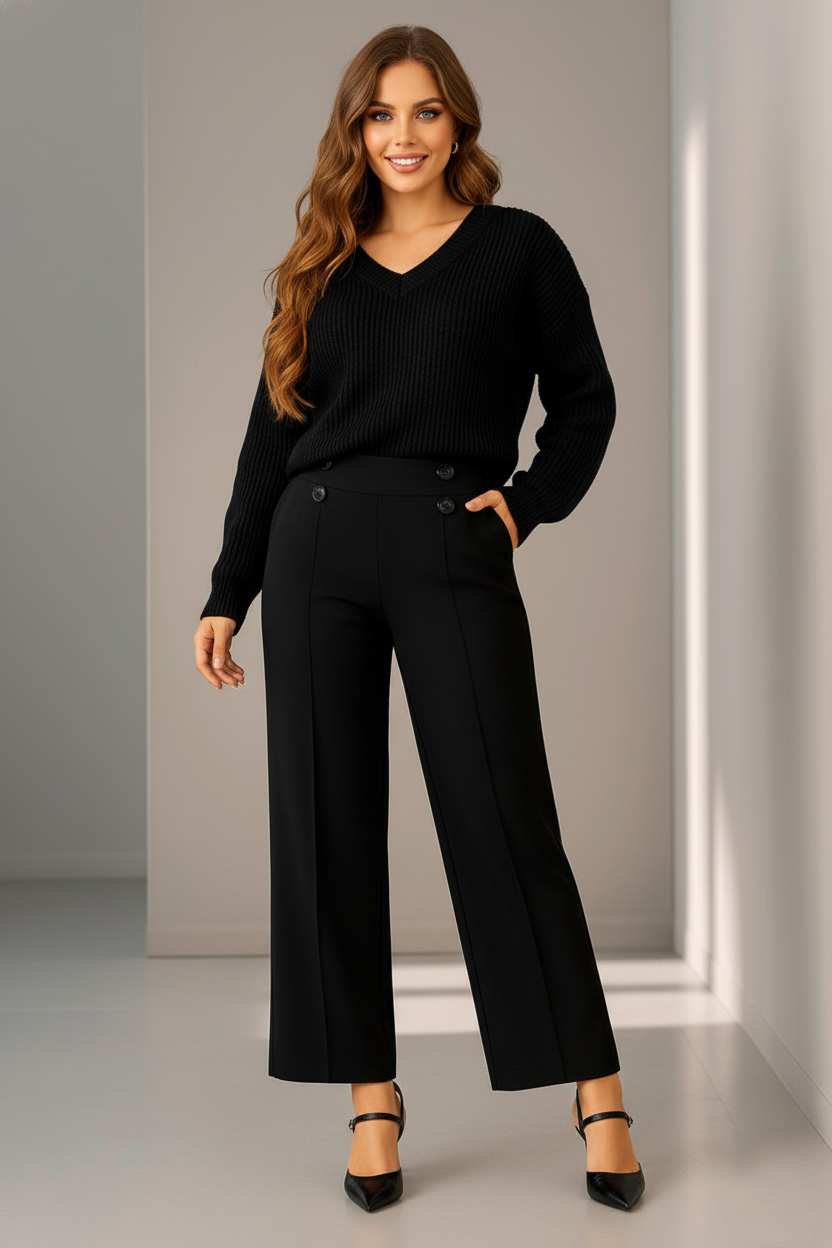 Γυναικείο Παντελόνι Με τσέπες Μαύρο Κρεπ Με Λάστιχο Plus size