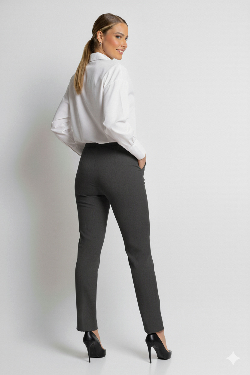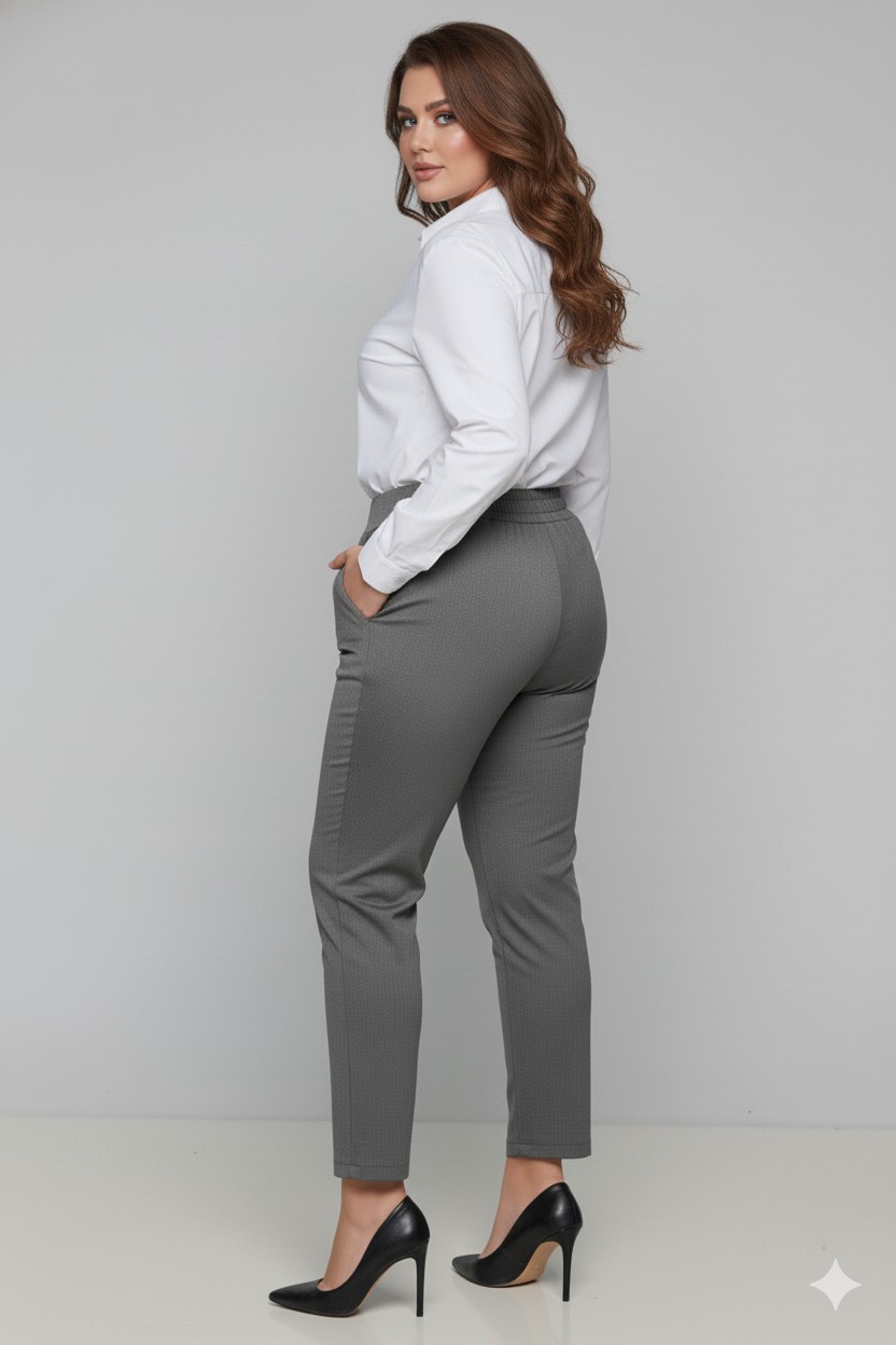 Γυναικείο Παντελόνι σε Υφή Βουτυρένιο Γκρι Με Λάστιχο Πίσω Plus size