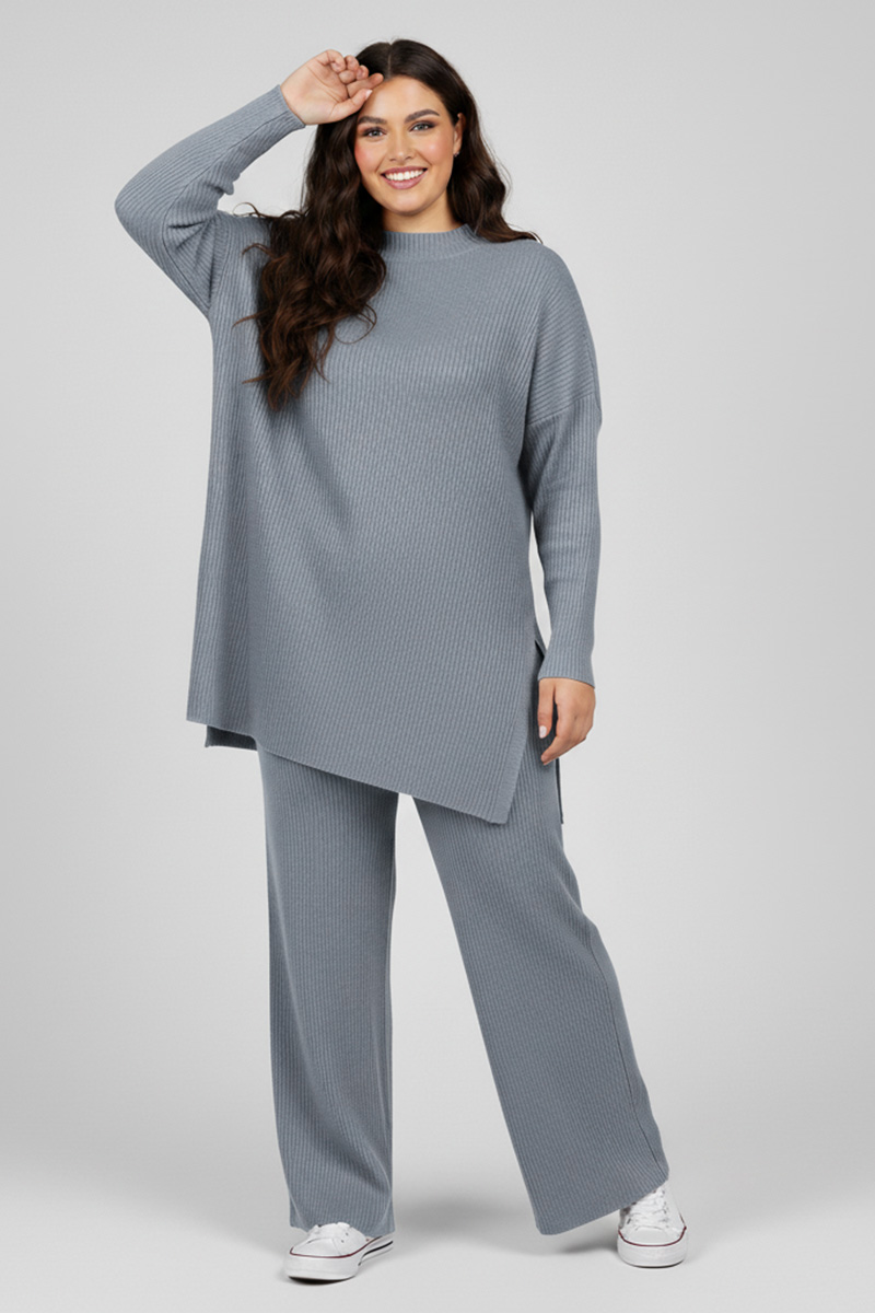 Γυναικείο Σετ φτιαγμένο από ριπ (πλεκτό) ύφασμα σε Γκρι Χρώμα Plus Size